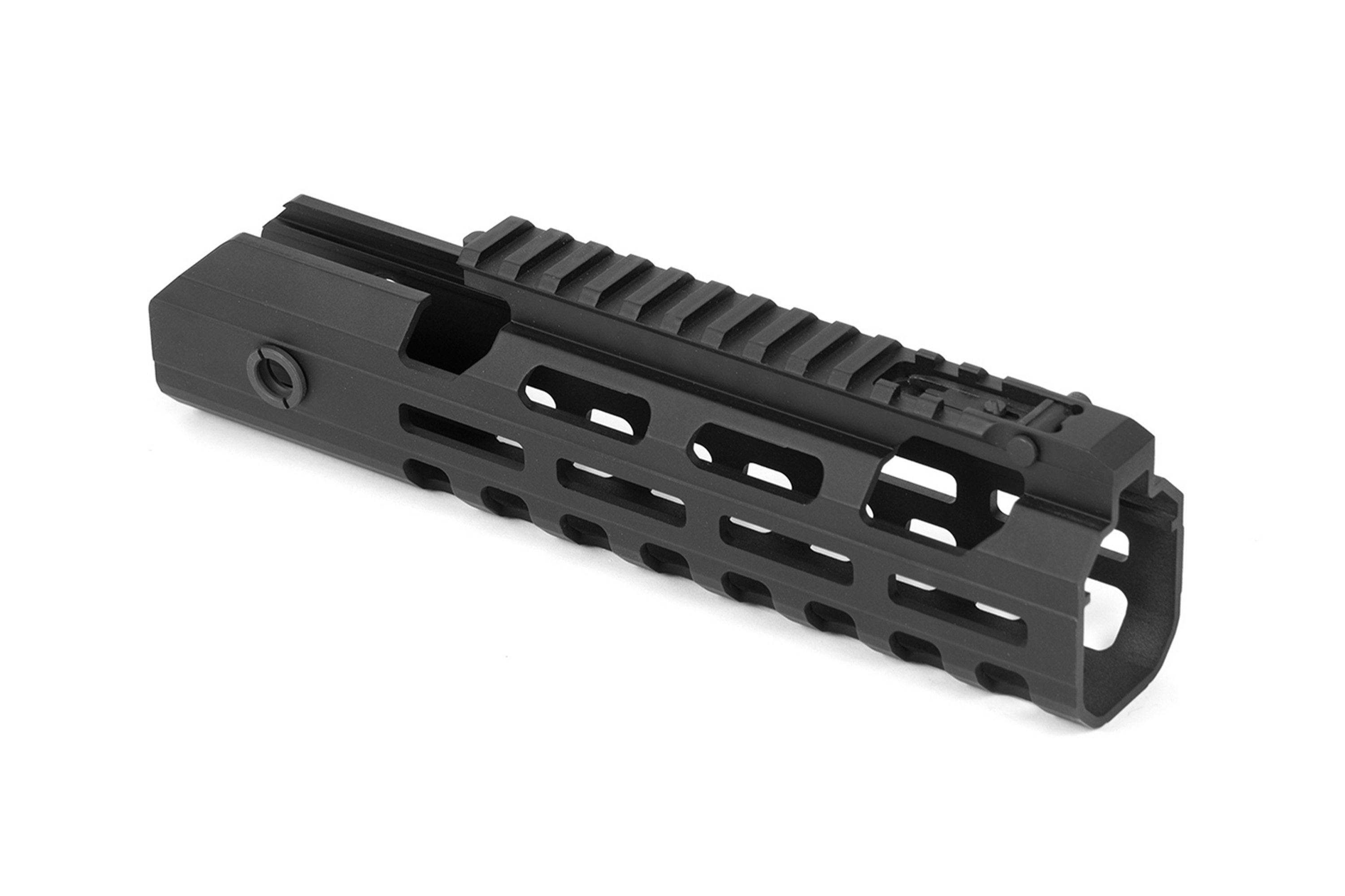 228mm-Handguard mit M-LOK Öffnungen und Picatinnyschiene, passend für das Ares Amoeba Mutant Softairgewehr im Kaliber 6mm BB.