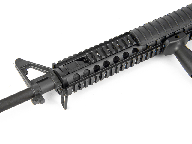 Die hochwertig verarbeitete S-AEG Waffe aus dem Hause ARES verfügt über ein Aluminium R.I.S.-Schienensystem, einen Frontgriff, einen festen Schaft, eine abnehmbare & einstellbare Visierung und ein einstellbares Spin-Up System.
