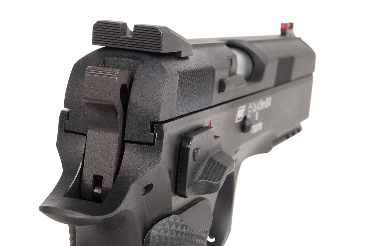 Der hochwertige Nachbau aus dem Hause ASG mit einer Energie von ca. 1,6 Joule verfügt über eine Fiberoptic Visierung, eine integrierte Railschiene und ergonomische gummierte Griffschalen. Durch das hohe Gewicht und den repetierenden Schlitten kommt die Waffe dem realen Vorbild sehr nahe.