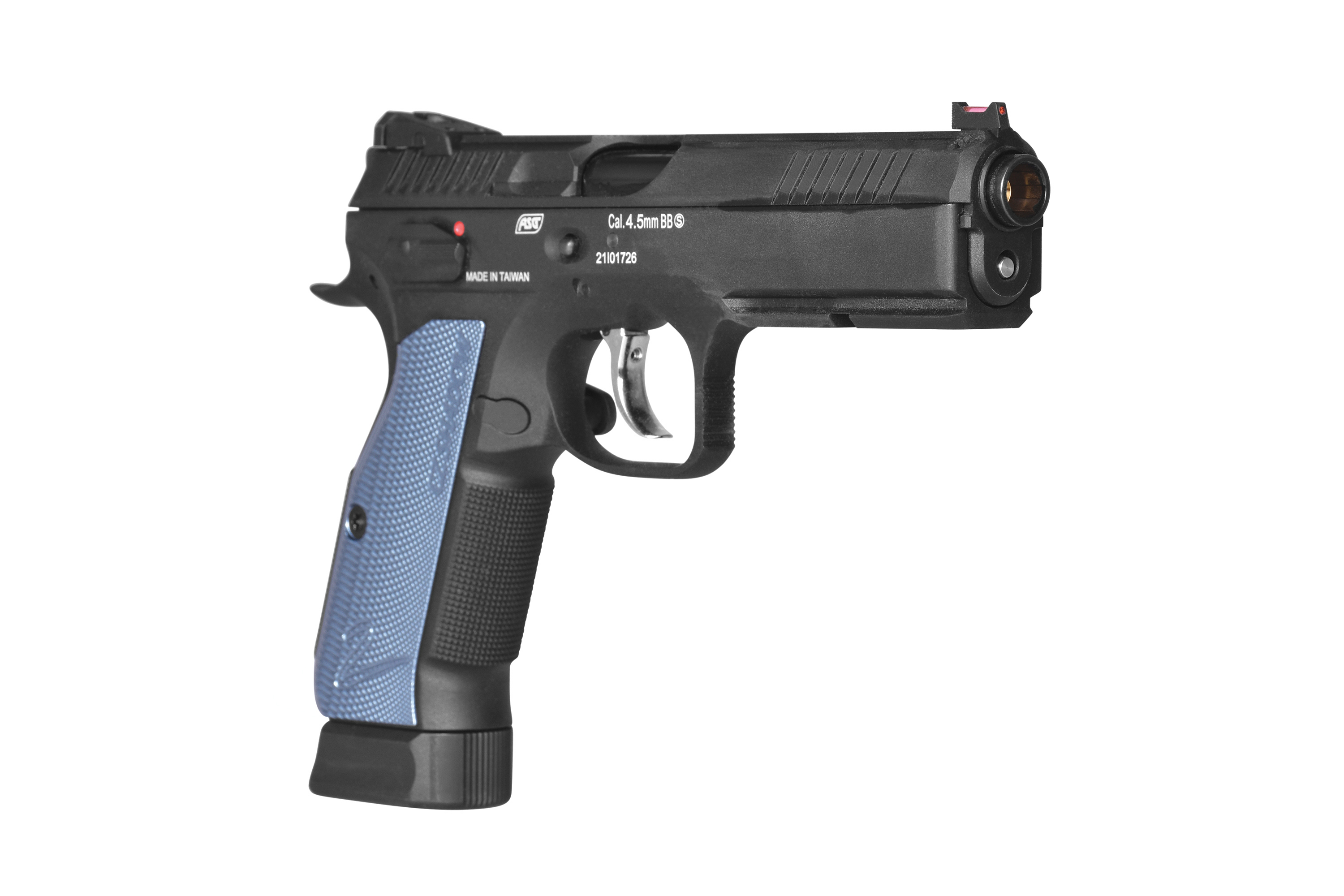 Das Original-Vorbild, die Shadow 2 wurde von erstklassigen Wettkampfschützen entwickelt und ist eine gut ausbalancierte Handfeuerwaffe, die auf Geschwindigkeit und Präzision ausgelegt ist. Der voll-lizensierte Nachbau von ASG als 4,5-mm Luftpistole orientiert sich an ihrem Gegenstück aus echtem Stahl und bietet