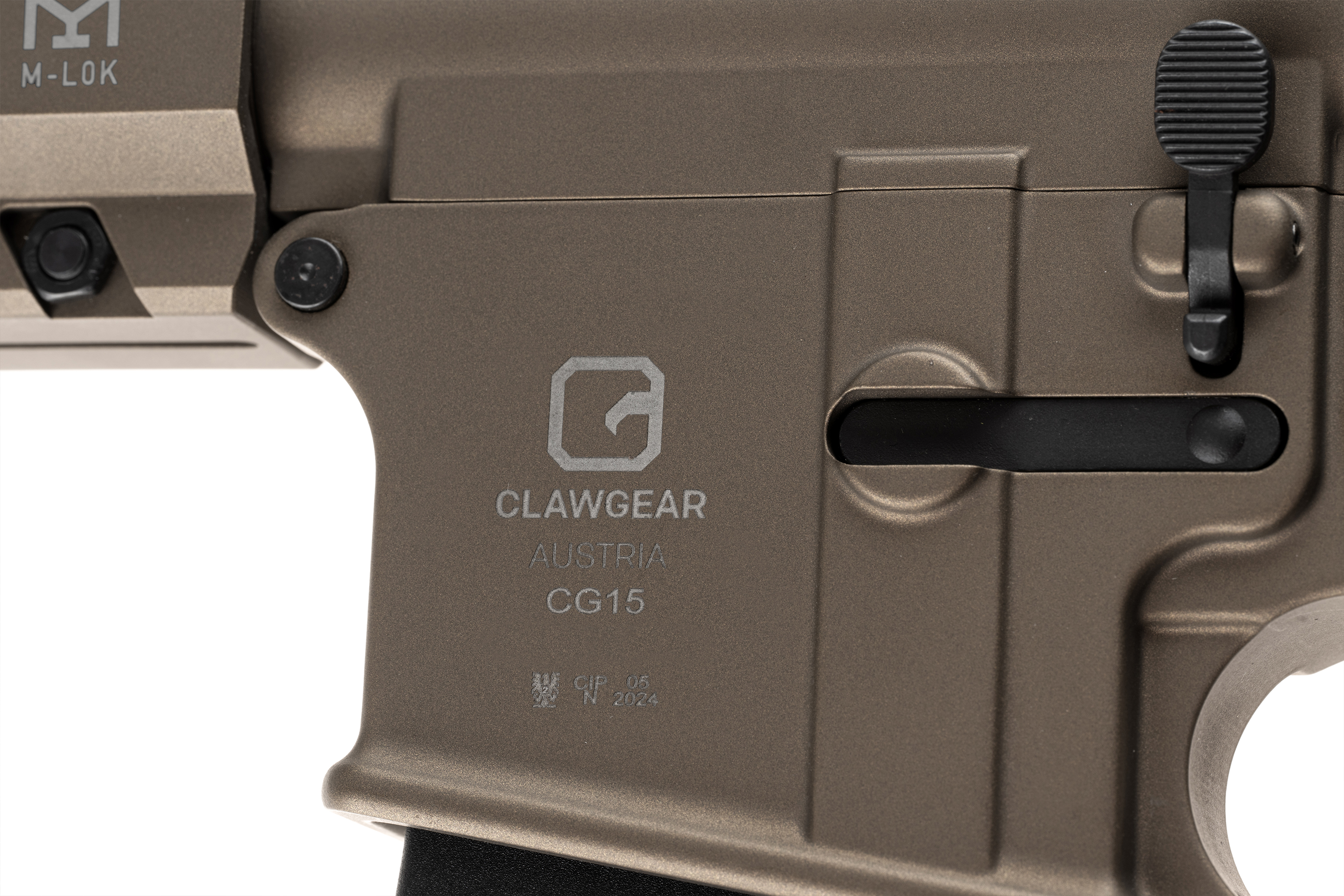 Das Clawgear CG15 mit Cerakote-Beschichtung in Midnight Bronze Brown ist 100% made in Austria und überzeugt durch eine hochwertige Verarbeitung, eine präzise Schussleistung und vielseitige Anpassungsmöglichkeiten. Das moderne AR-15-basiertes Selbstladegewehr im Kaliber 223 Remington bietet eine ausgewogene Kombination aus Reichweite, Stabilität und ergonomischer Handhabung und ist damit eine zuverlässige Wahl im AR-15-Segment.