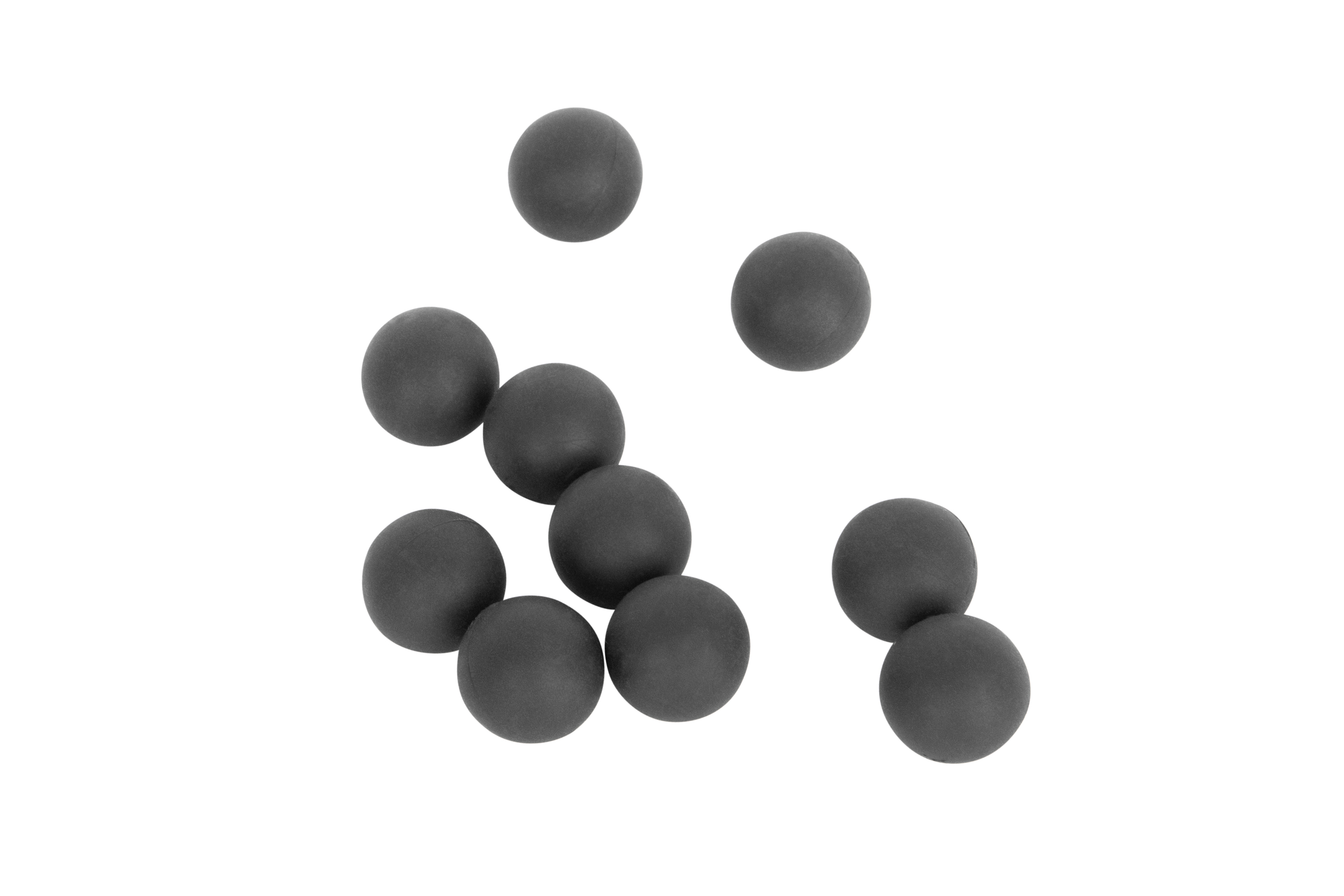 10 Stück schwarze, schwere Gummikugeln (RAM Munition) im Kaliber .50 speziell für Traningsmarker und Home Defense Waffen.