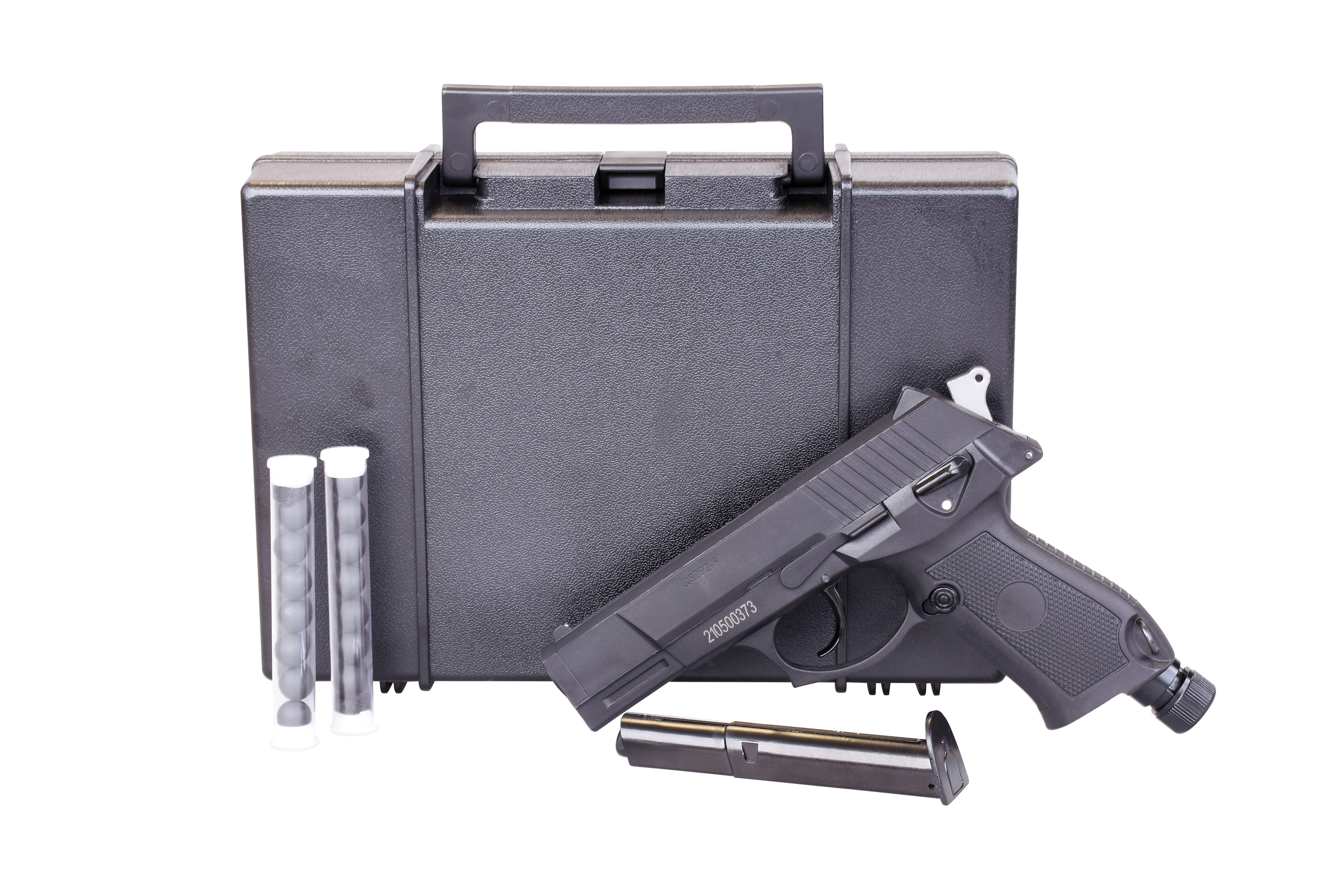- Kann verschiedenen Munition in .50 verschießen (Gummi, Pfeffer)