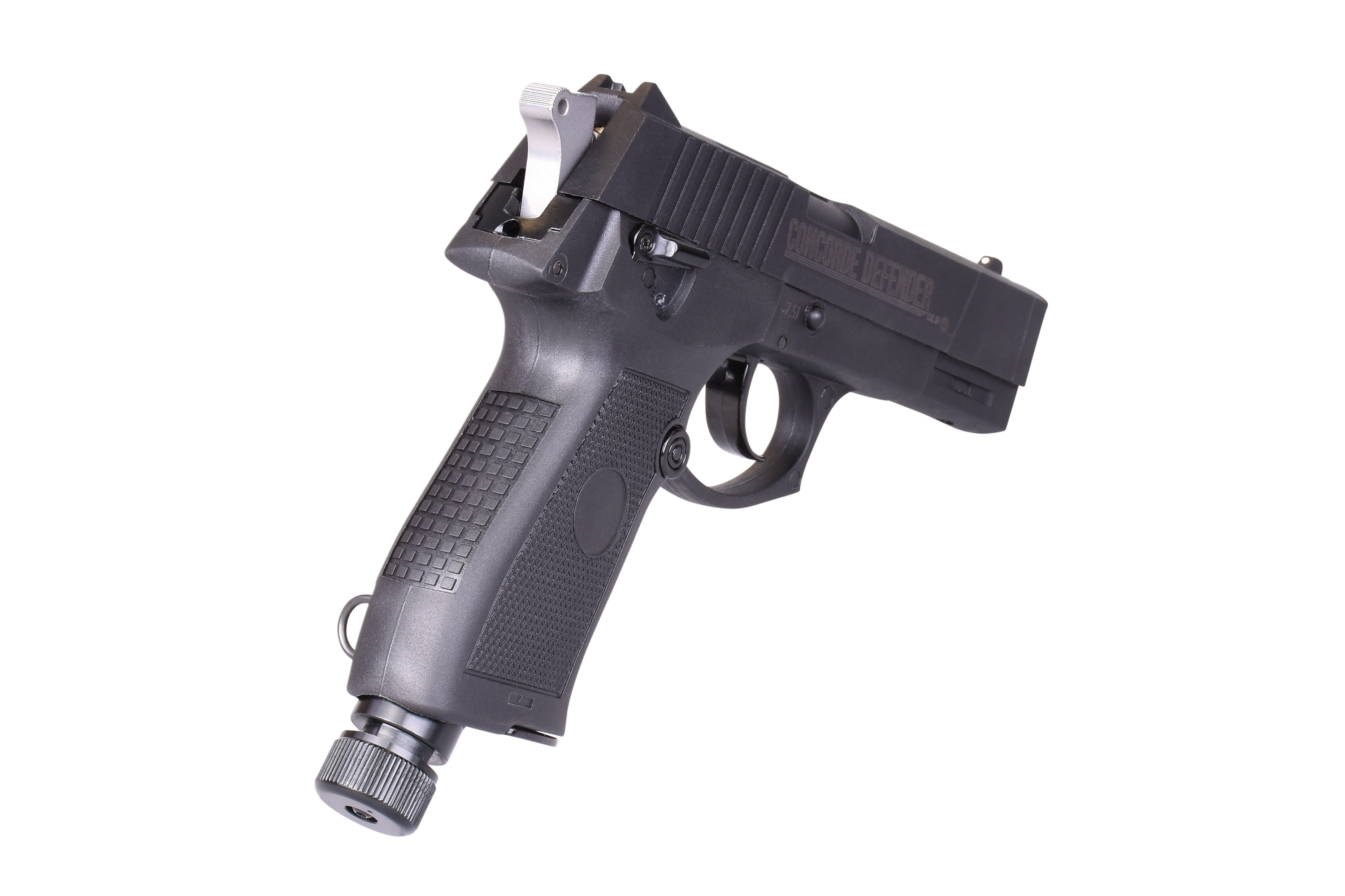 Der Training Marker CONCORDE DEFENDER aus dem Hause Europ-Arms verschießt Geschosse im Kaliber .50 und wird mit einer 12g Co2 Kapsel angetrieben. Als Munition sind sowohl Gummikugeln als auch Pfeffer- oder Kunststoffgugeln geeignet. Bis zu 7 Schuss können manuell geladen werden.