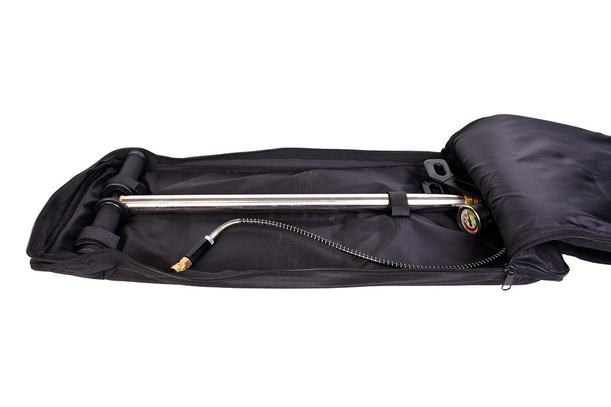 Im Lieferumfang sind außerdem ein Öl-Wasser-Filter, ein Ersatzteilset sowie eine multifunktionale Aufbewahrungstasche mit zusätzlicher Tragefunktion für PCP-Gewehre enthalten. Die Tasche ist auch als Rucksack tragbar.