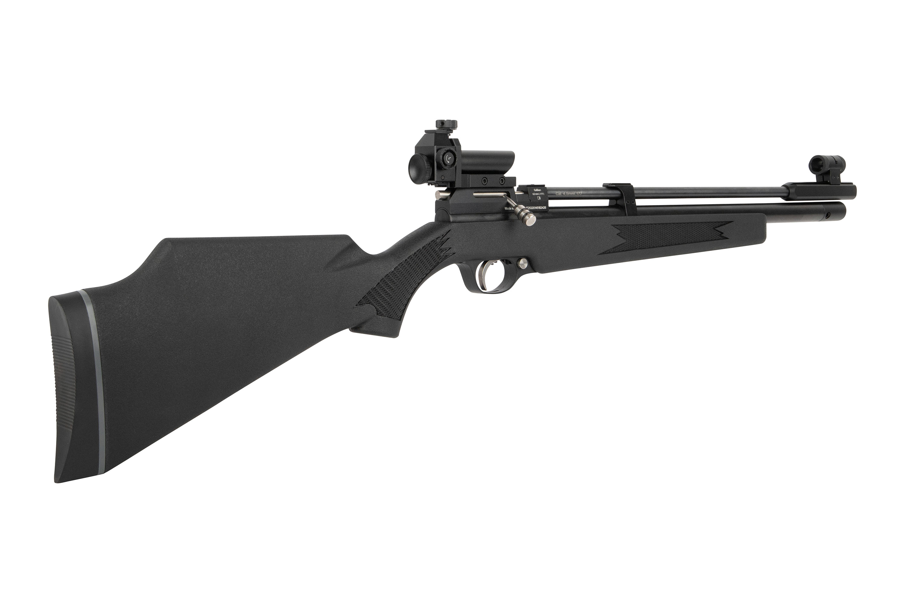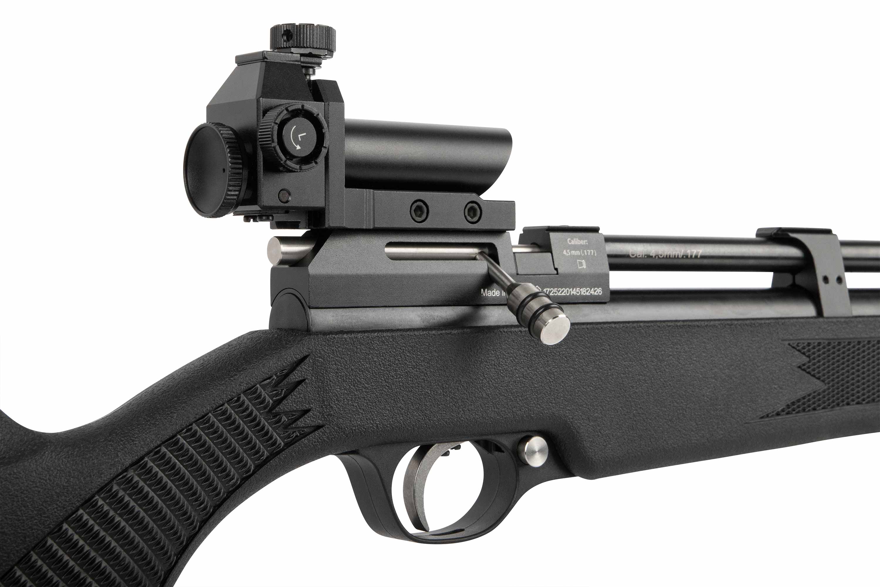 Das Modell kann sowohl im Einzelschuss-Modus als auch mit dem mitgelieferten 9-Schuss-Trommelmagazin betrieben werden. Das Magazin ist für Diabolos mit einer Länge von bis zu 8,6 mm ausgelegt.