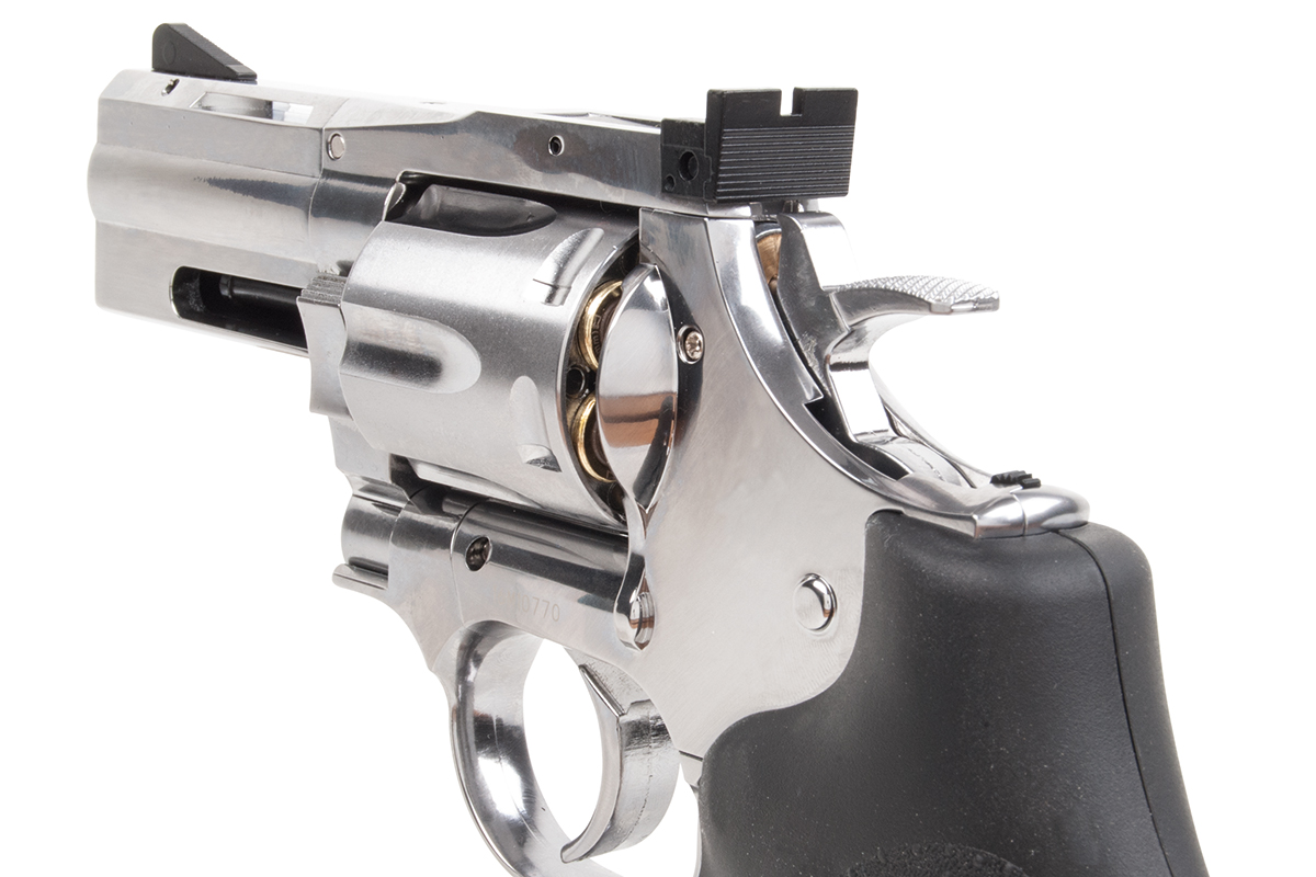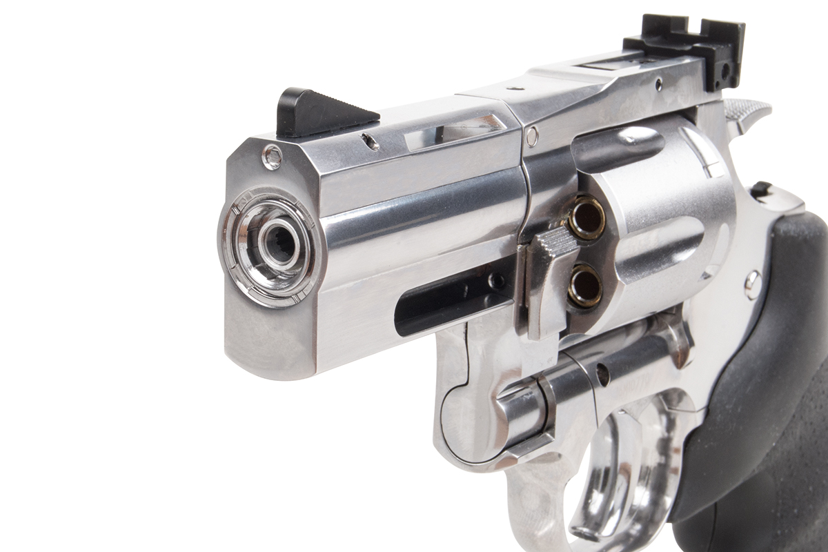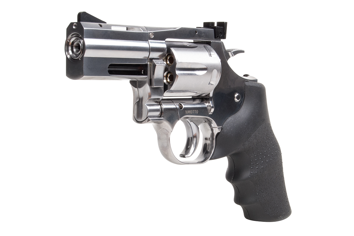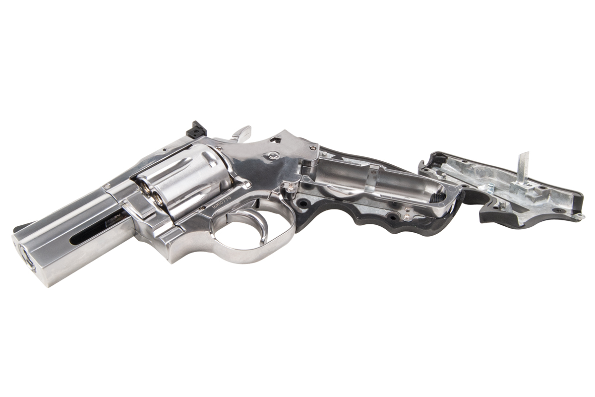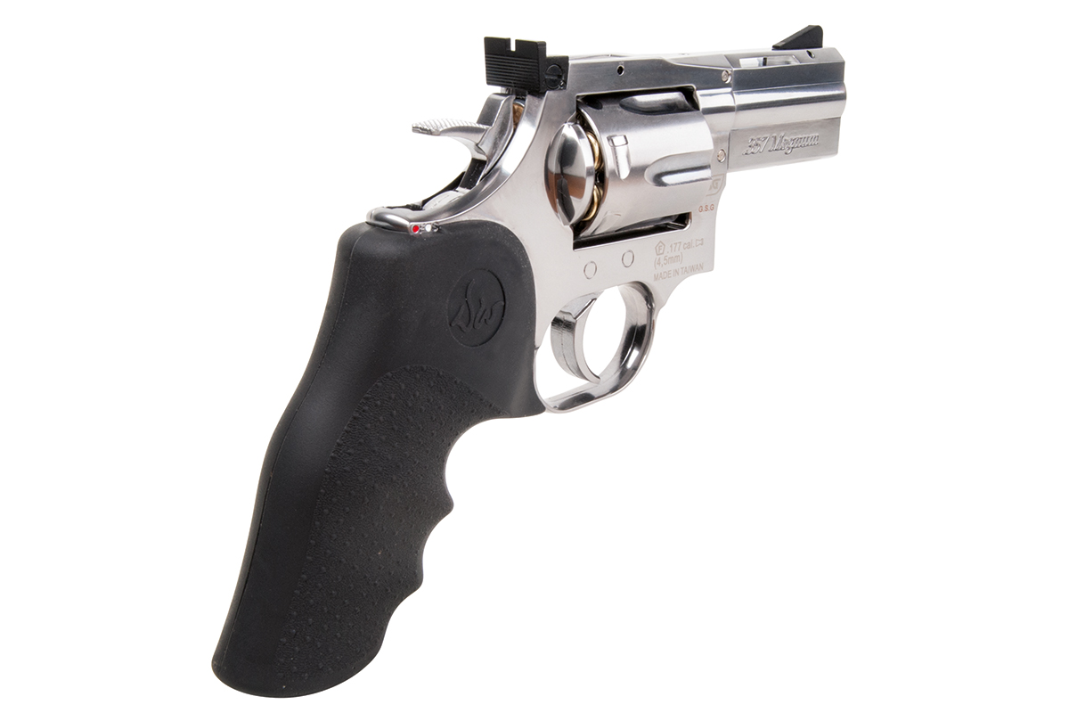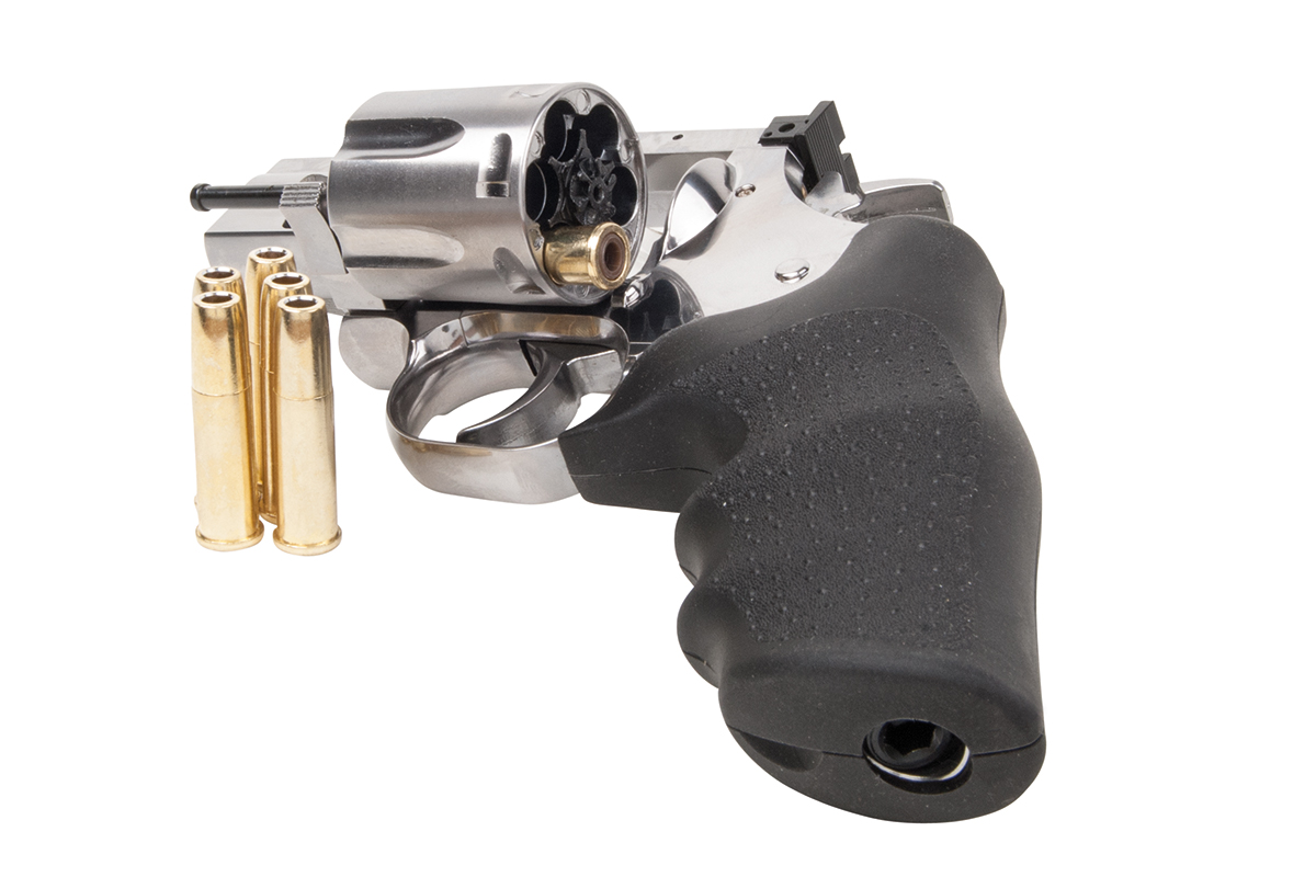 Der hochwertig verarbeitete Nachbau aus dem Hause ASG in Kaliber 4,5mm Diabolo wird mit CO2 betrieben. Der Revolver aus Vollmetall verfügt über eine individuelle Seriennummer, einen gezogenen Lauf, einen Double Action Abzug, eine verstellbare Visierung und ein gummiertes Griffstück im Hogue Design. Im Lieferumfang sind ein Speedloader und 6 Hülsen enthalten. Im Griffstück befindet sich zusätzlich ein Innensechskantschlüssel, mit welchem die Co2-Kapsel ganz einfach zu installieren ist.