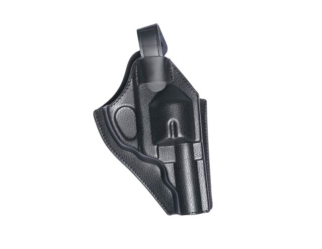Schwarzes Dan Wessen Holster von ASG passend für alle 2,5" und 4" Dan Wesson Revolver. Das Holster besteht aus Kunstleder mit vorgeformten Konturen und verfügt über ein Soft-Futter zum Schutz gegen Zerkratzen der Waffe sowie eine Sicherungslasche mit Druckknopf.