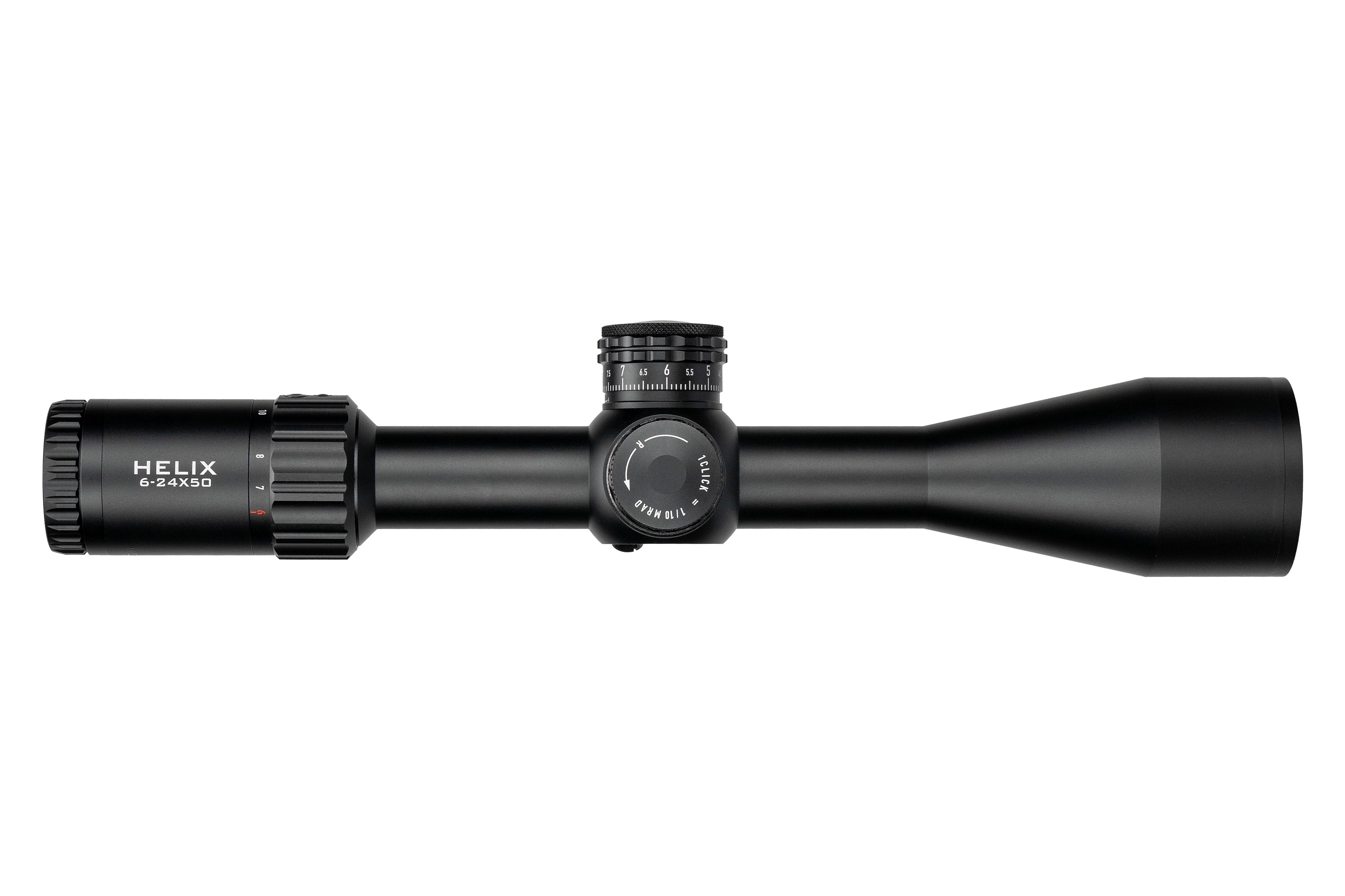 Das überarbeitete 6-24x50-Optiksystem mit einem Glas aus deutscher Produktion behält die Grundabmessungen der ersten Generation bei, bietet jedoch ein größeres Sehfeld, eine tolerantere Augenposition und überlegene Randschärfe. - Ultrapräzises Tracking