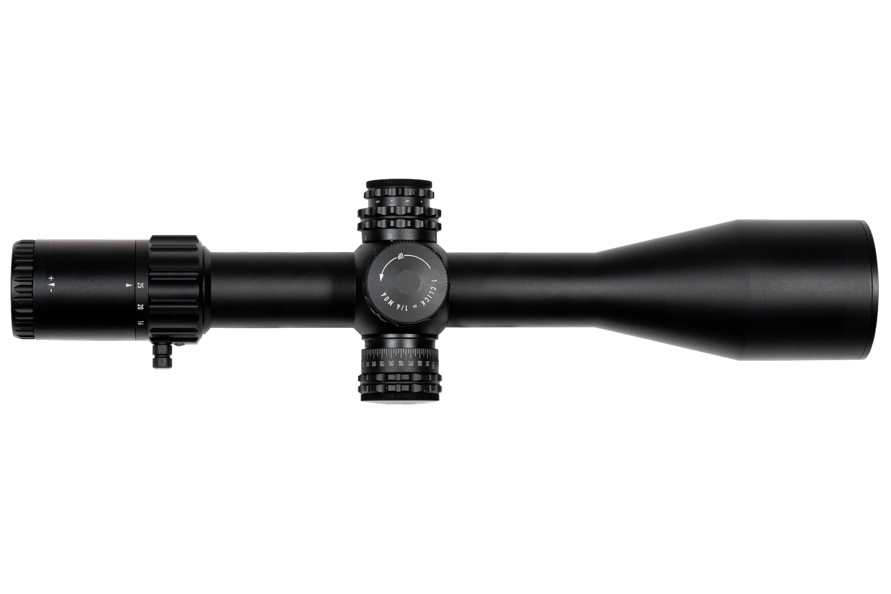 - Werkzeuglos rückstellbare Türme mit 25 MOA pro Umdrehung