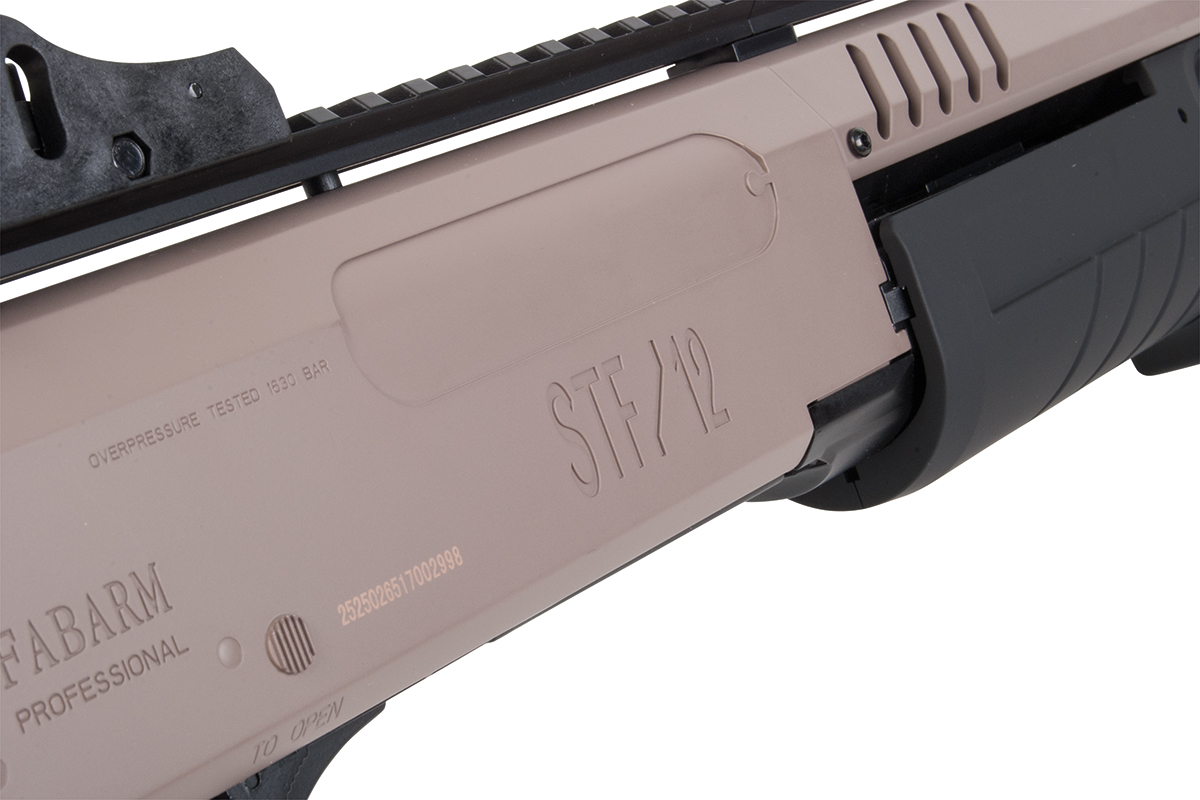 Eigenschaften "Fabarm STFS12 11" Tan 6mm - Airsoft Federdruck Pumpgun"