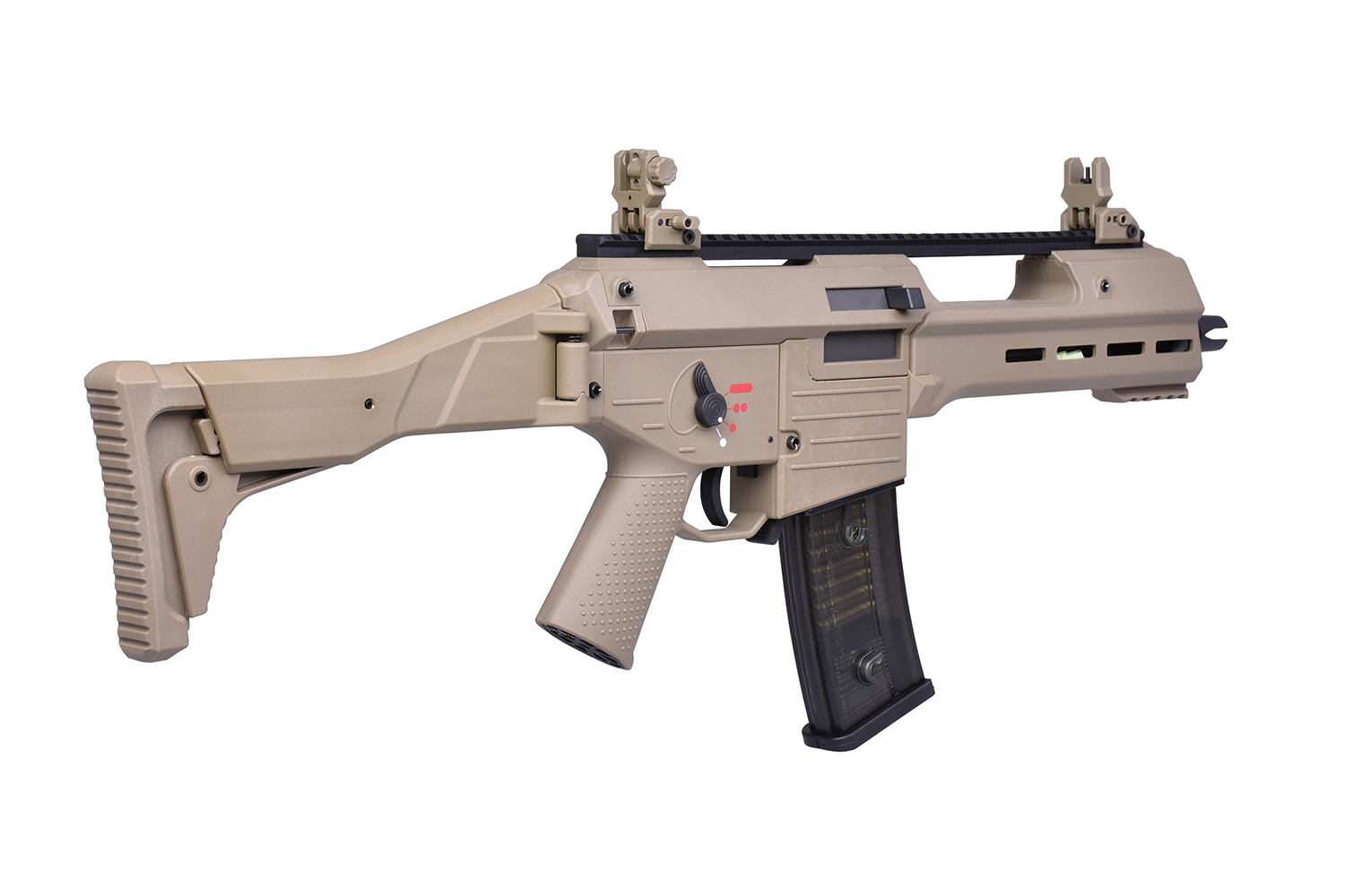 Weiterhin bietet das Modell einen neu designten Klappschaft mit verstellbarer Schulterstütze, eine einstellbare Flip-Up Visierung, ein Anti-Slip Griffstück und ein einstellbares Hop-Up System für ein optimiertes Trefferbild.