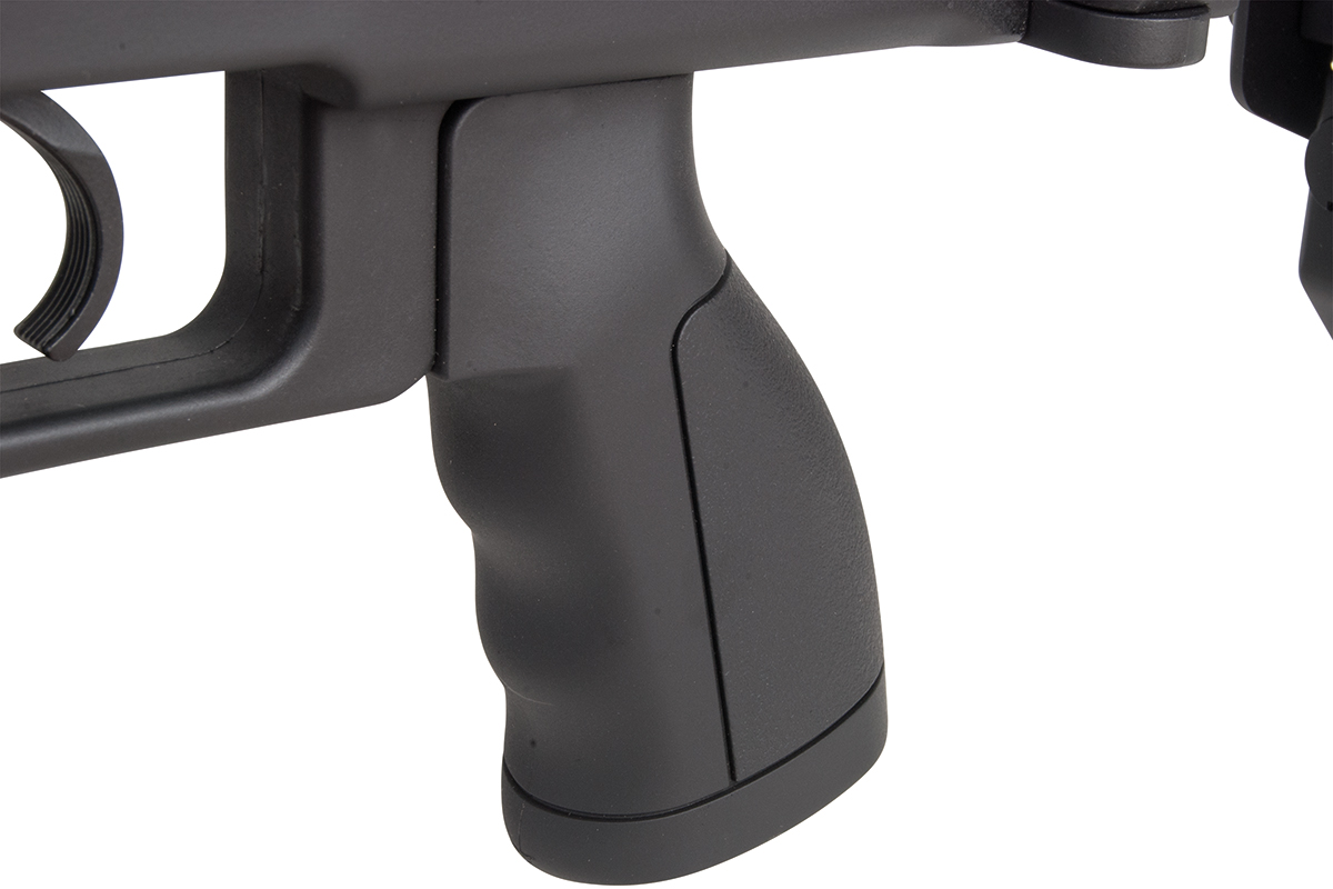 Das hochwertige Sniper-Gewehr aus dem Hause WELL mit einer Energie von ca. 1,7 Joule verfügt über eine einklappbare Schulterstütze, ein integriertes Zweibein, einen Tragegurt, einen Speedloader, eine höhenverstellbare Wangenauflage und verschiedene Railschienen. Gefertigt wird das Mododell aus Metall (Hauptgehäuse, Lauf & R.I.S.-System) sowie aus Kunststoff. Das bewährte Spin-Up System sorgt für Präzision auf höchstem Niveau. Die Lieferung erfolgt inklusive passendem Zielfernrohr.