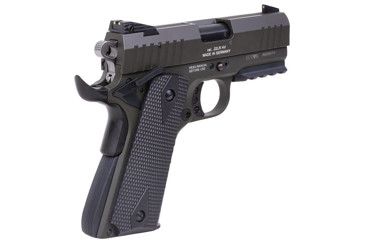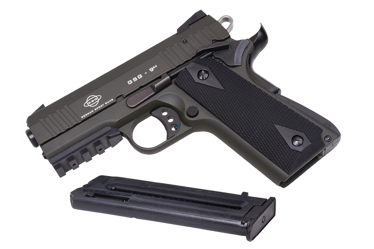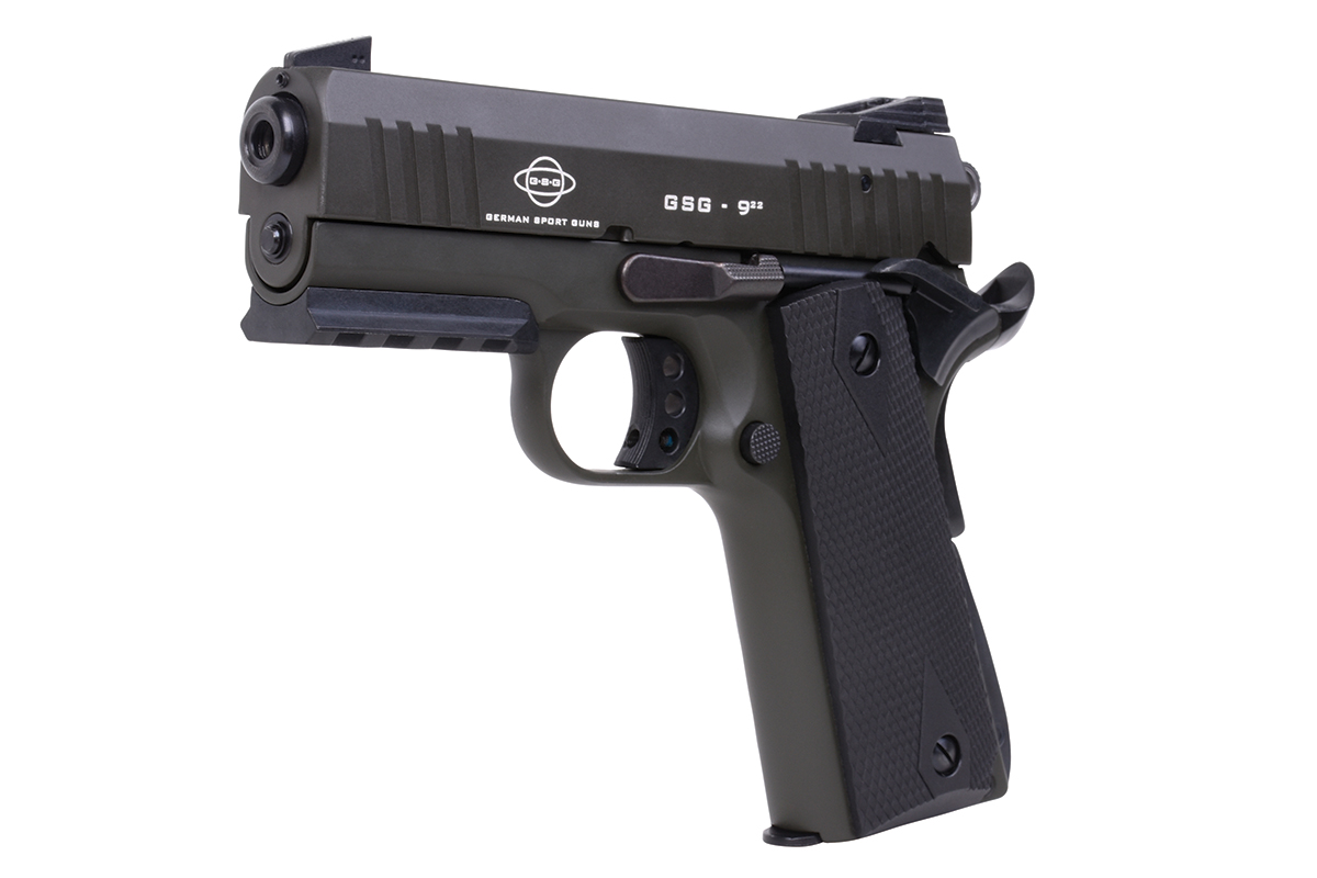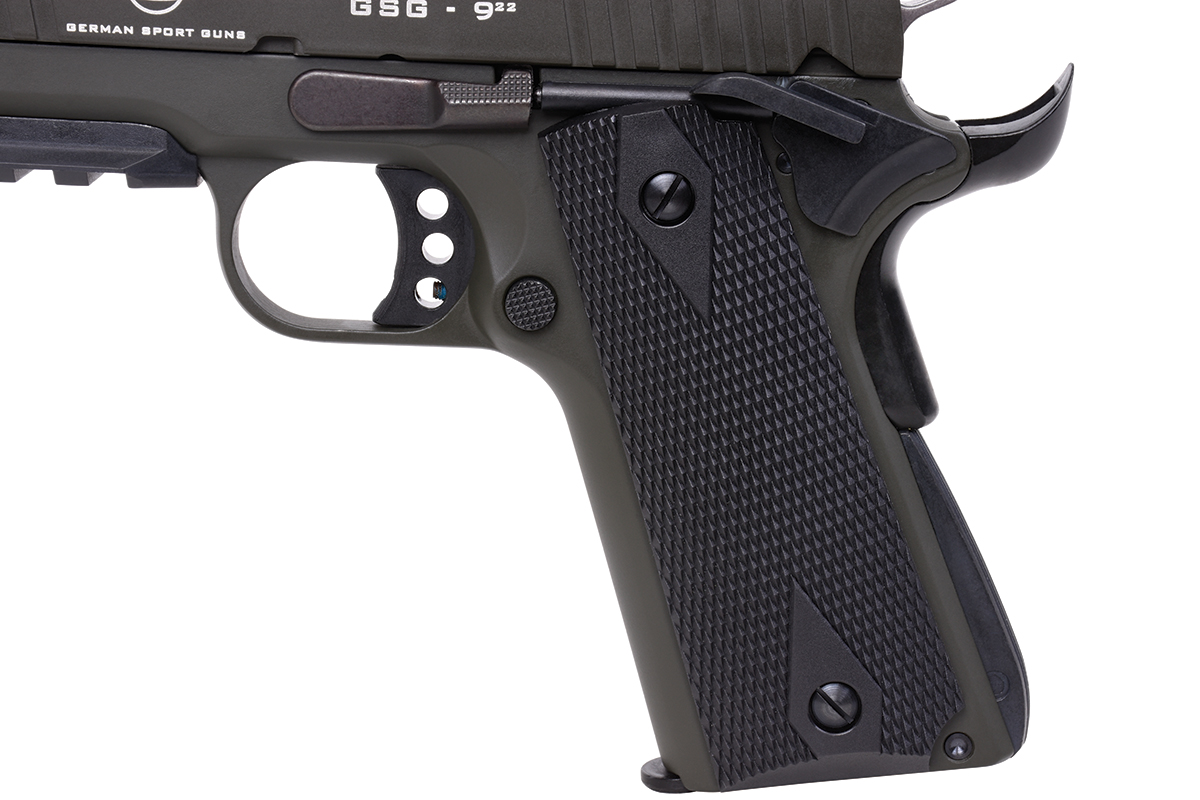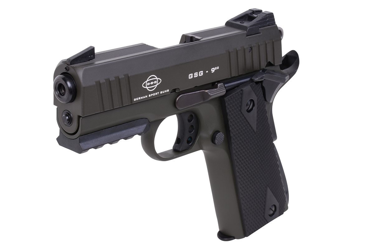Die GSG-922 Selbstladepistole im Cal. .22 ist eine kompakte Ausführung der beliebten 1911, mit dreizölligem Lauf und einigen Erweiterungen bei der Sicherung.