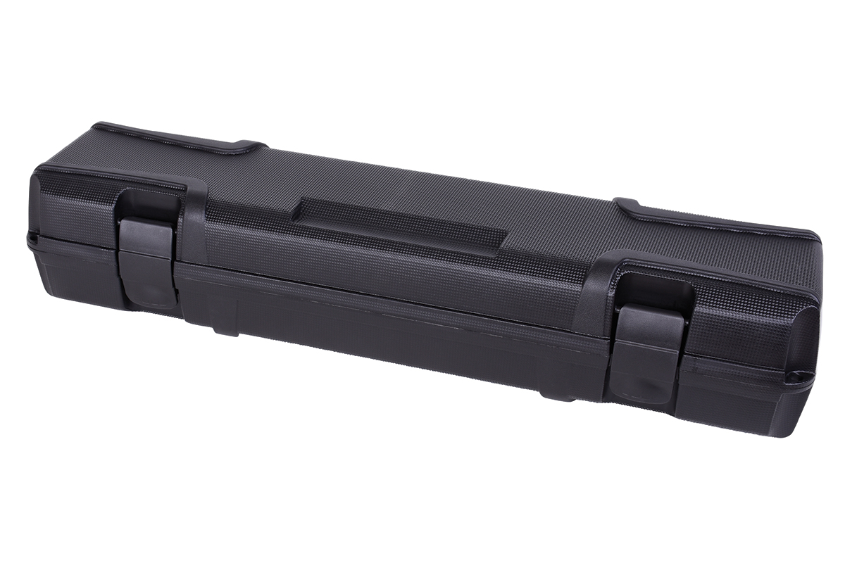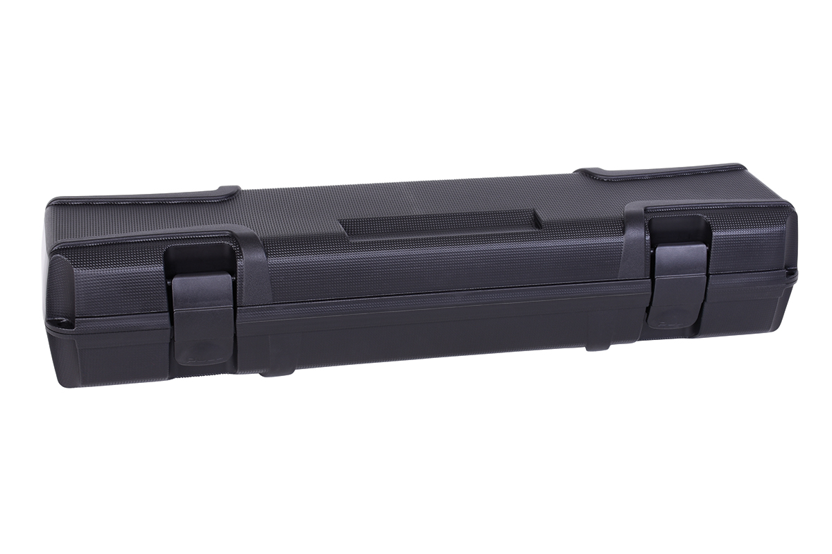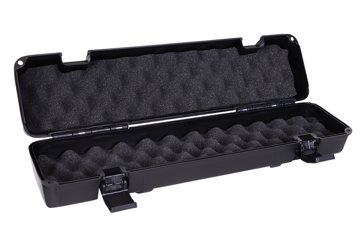 Moderner, robuster Koffer aus schlagfestem Kunststoff mit doppelseitiger Schaumstoffpolsterung, min. geeignet für Zielfernrohre mit bis zu einem Linsendurchmesser von 56 mm und Schalldämpfer. Mit seitlichen Kunststoffösenzur optionalen Befestigung von Vorhängeschlössern.