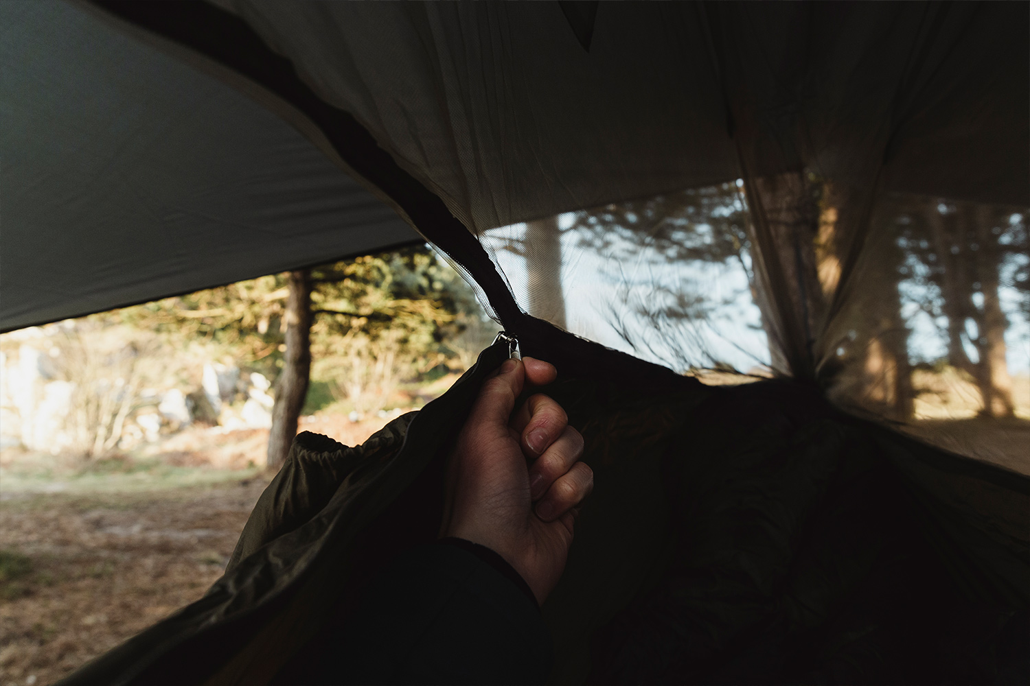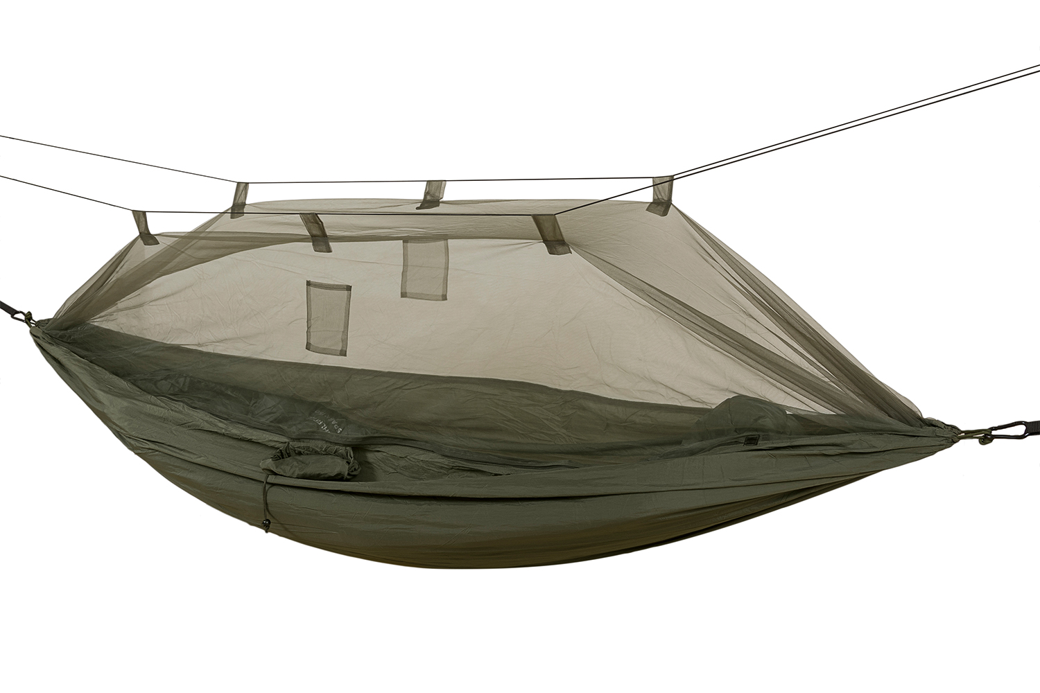 Die Highlander Crusader Waterproof Hammock ist ein durchdachtes Outdoor-Schlafsystem für Übernachtungen abseits des Bodens. Die Hängematte verfügt über ein integriertes Moskitonetz und wird mit einem wasserdichten Tarp (2000 mm Wassersäule) geliefert, das zuverlässigen Schutz vor Regen, Insekten und Witterungseinflüssen bietet.