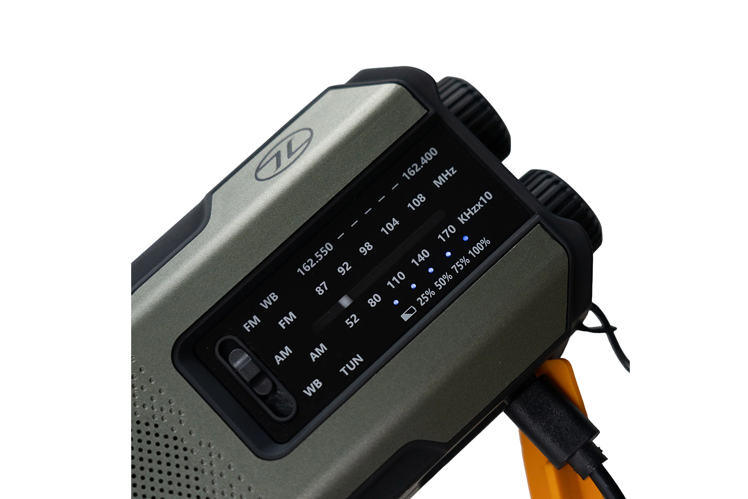 Das Highlander Emergency Survival Radio ist ein kompaktes Notfallradio mit mehreren Energiequellen für den Einsatz im Outdoor-Bereich und in Krisensituationen. Es kombiniert Radioempfang, Beleuchtung und Ladefunktion in einem tragbaren Gerät.