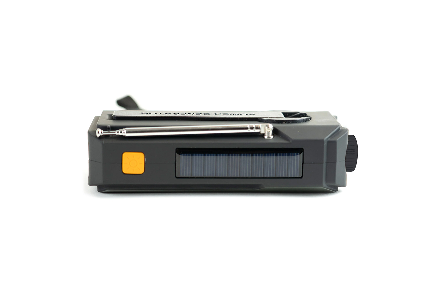 Durch Handkurbel, Solarpanel und USB-Ladeoption bleibt das Gerät unabhängig von externer Stromversorgung einsetzbar.