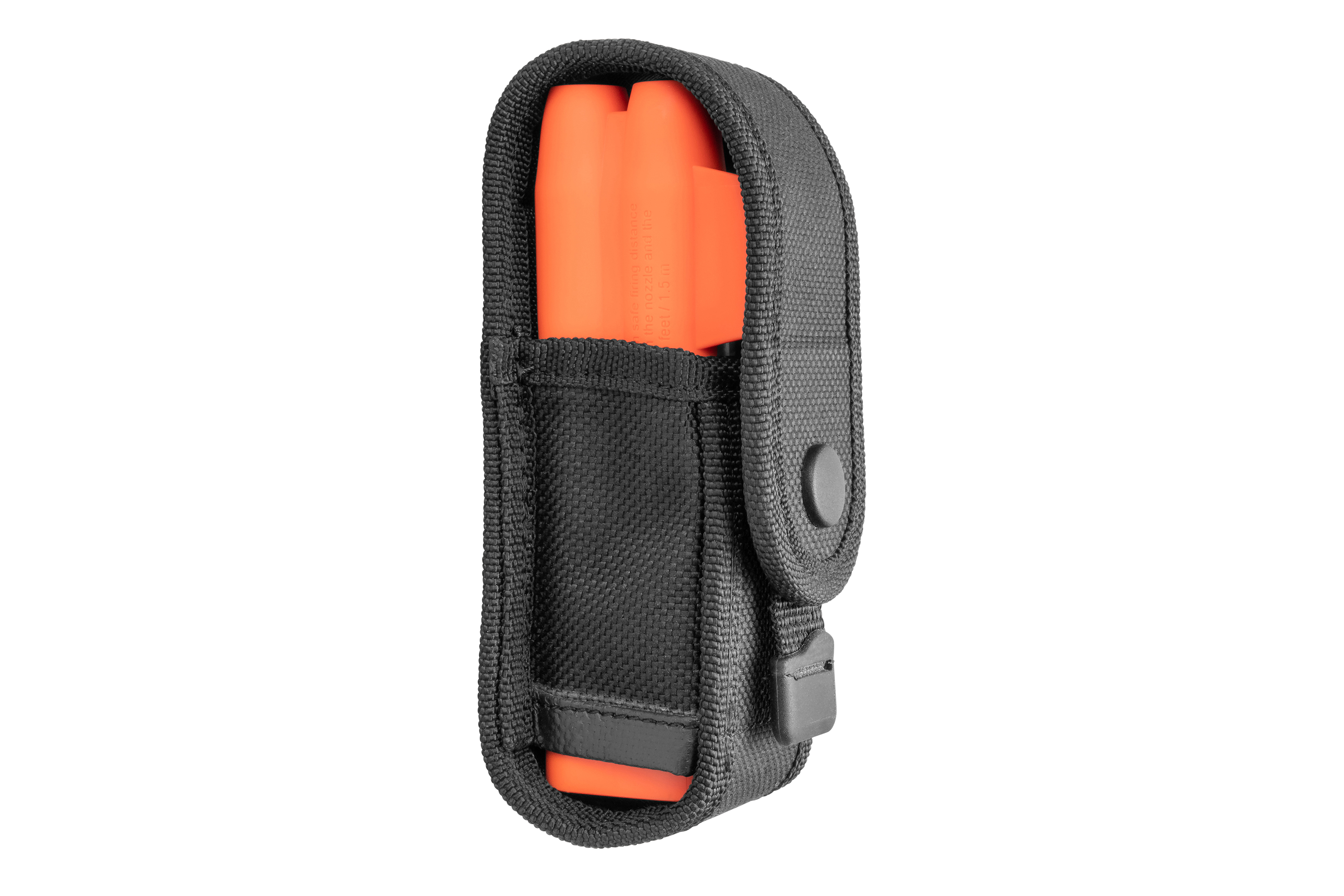 Das Holster besteht aus pflegeleichtem, verstärkten Cordura und wird per Klettverschluss gesichert.