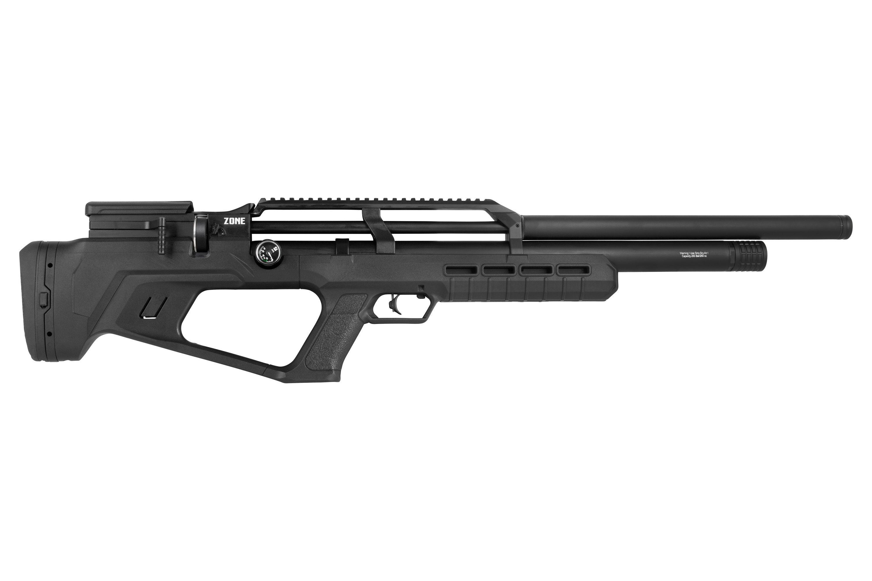 Das Reximex Zone Luftgewehr im Bullpup-Design ist eine exzellente Wahl für alle, die auf der Suche nach einem qualitativ hochwertigen und zuverlässigen Pressluftgewehr sind. Mit einer beeindruckenden Präzision und einer Leistung von ca. 7,2 Joule ist dieses Gewehr ideal für Freizeit- und Sportschützen geeignet. Es verfügt über eine fortschrittliche Dämpfungstechnologie für einen reduzierten Rückstoß. An der Unterseite kann bei Bedarf an dem M-LOK Handguard eine kurze Picatinnyschiene (inkl.) angebracht werden, um ein Zweibein zu montieren.