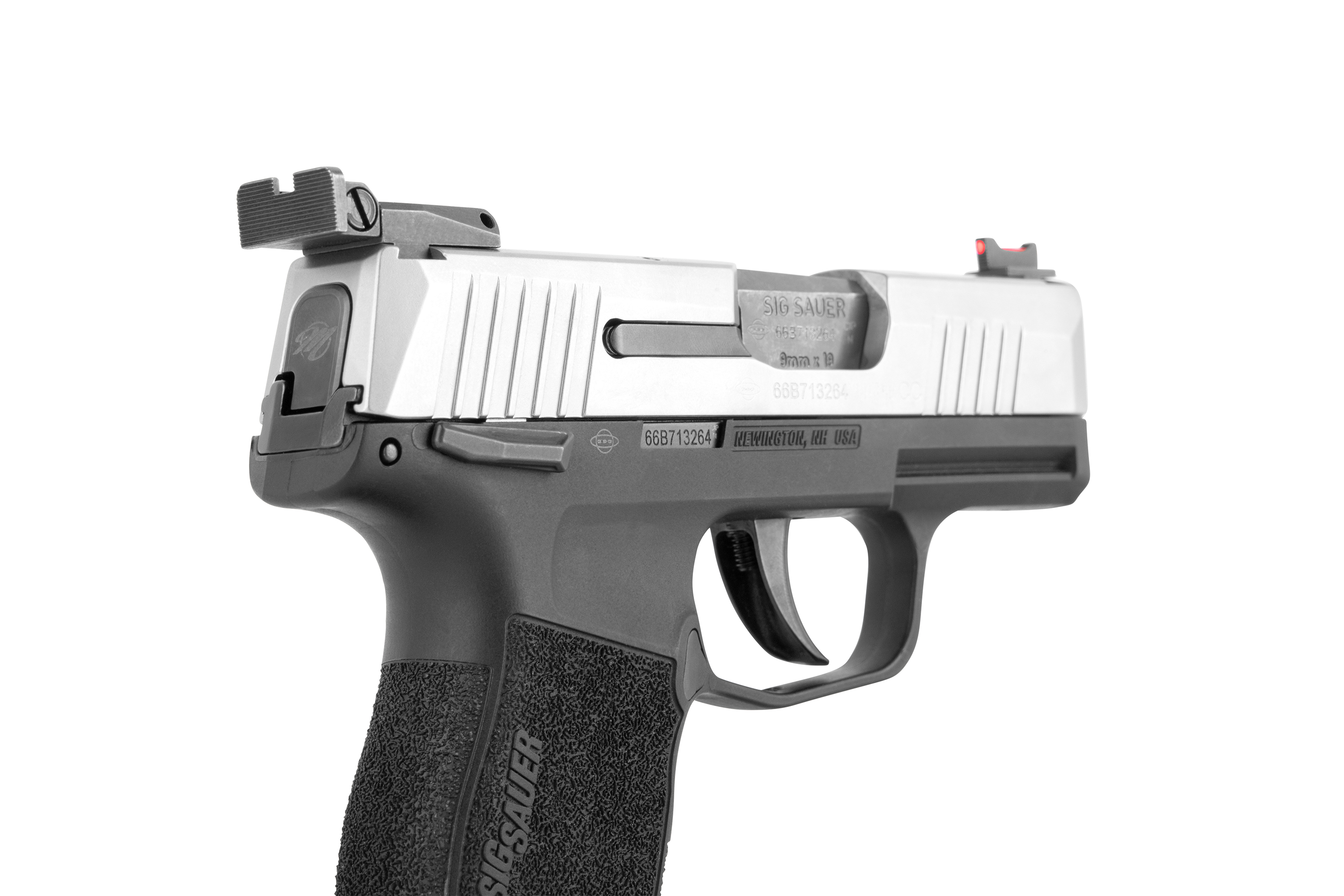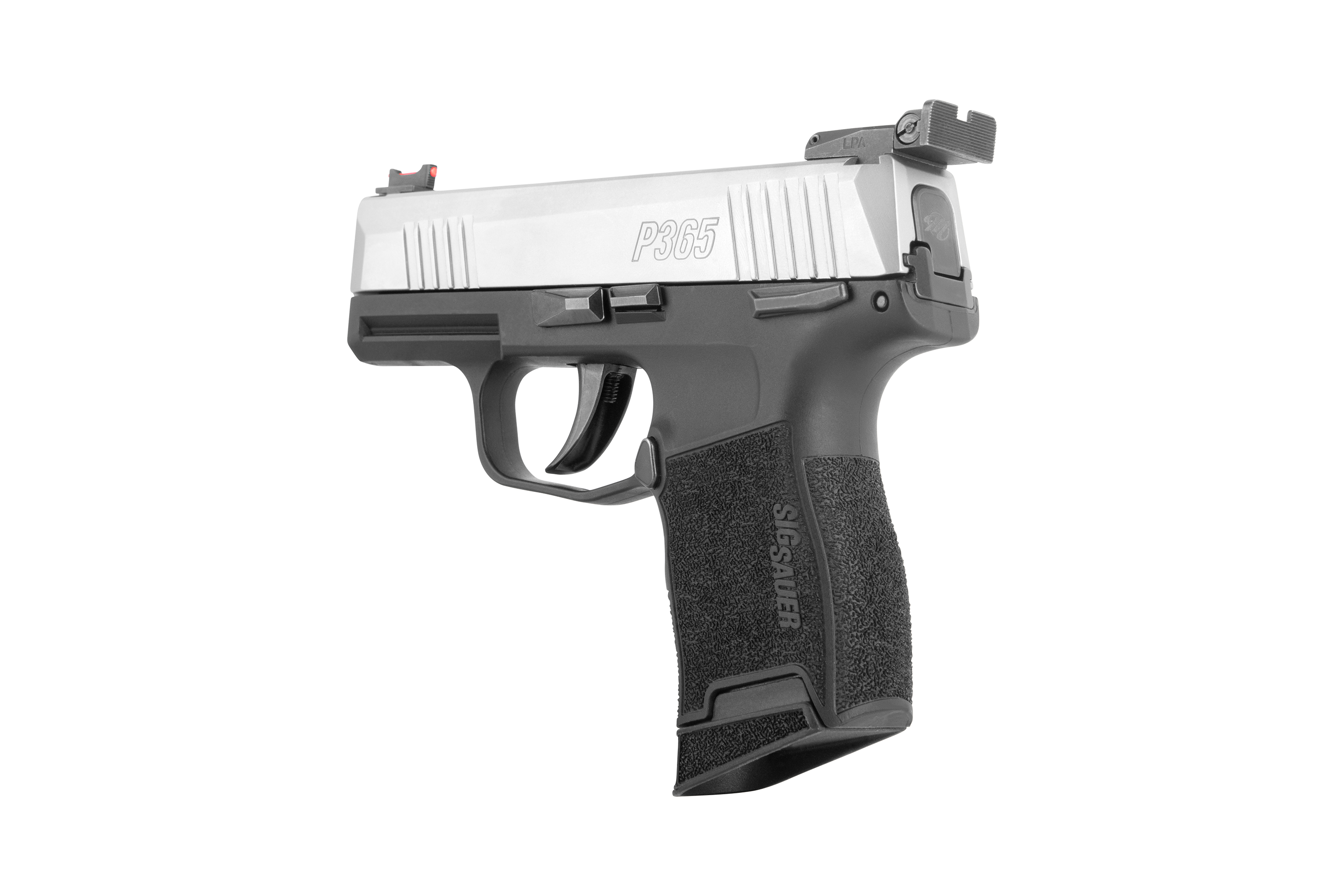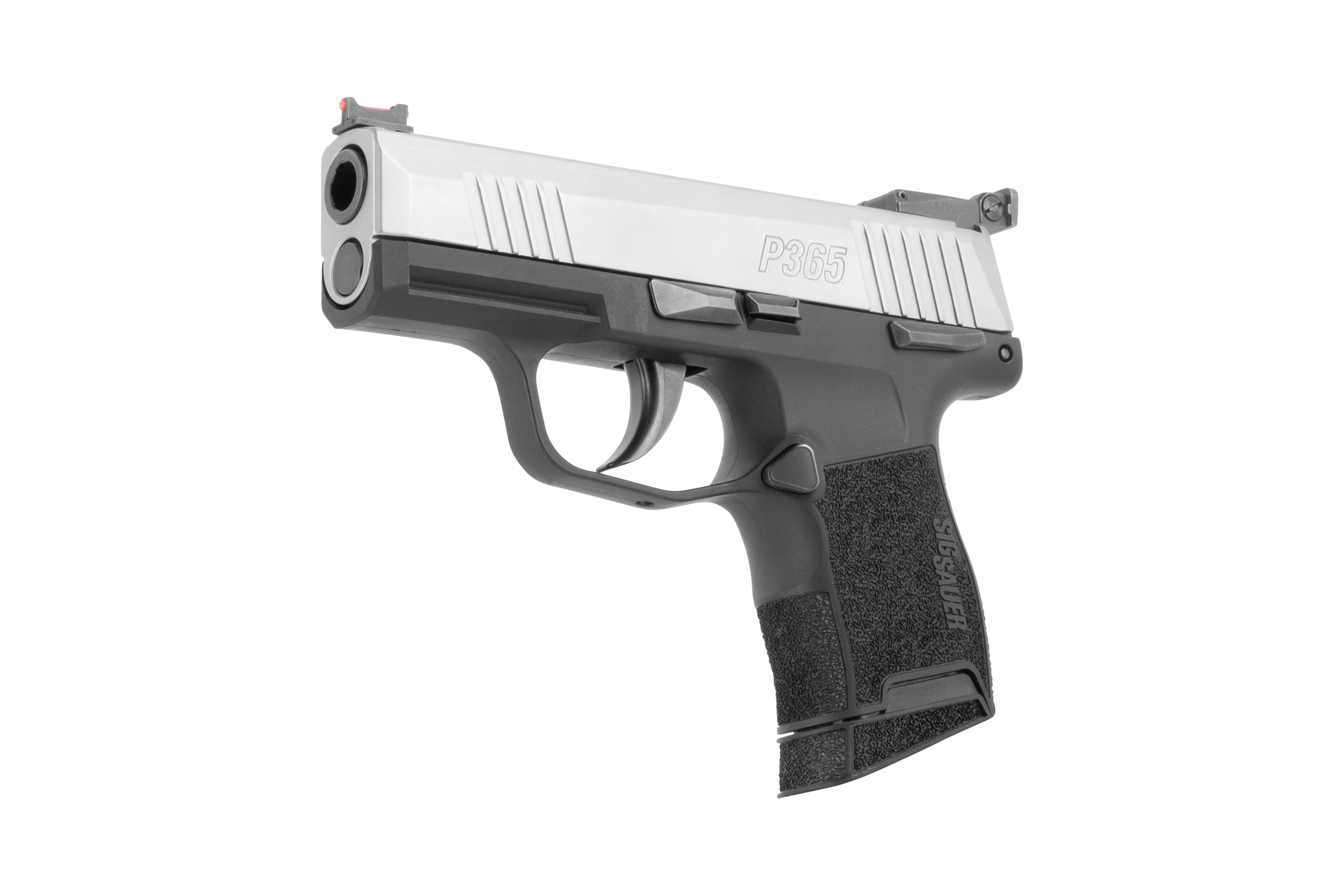 Die Micro Compact Pistole SIG SAUER P365 Nitron MS verfügt über eine manuelle Sicherung,eine Kontrast-Visierung, einen Edelstahlrahmen, ein Polymer-Griffstück, einen Schlitten aus Edelstahl mit Nitron-Beschichtung, einen Lauf aus Carbon-Stahl, ein Stahl-Magazin, einen Striker-Fire Abzug sowie eine SIG Railschiene.