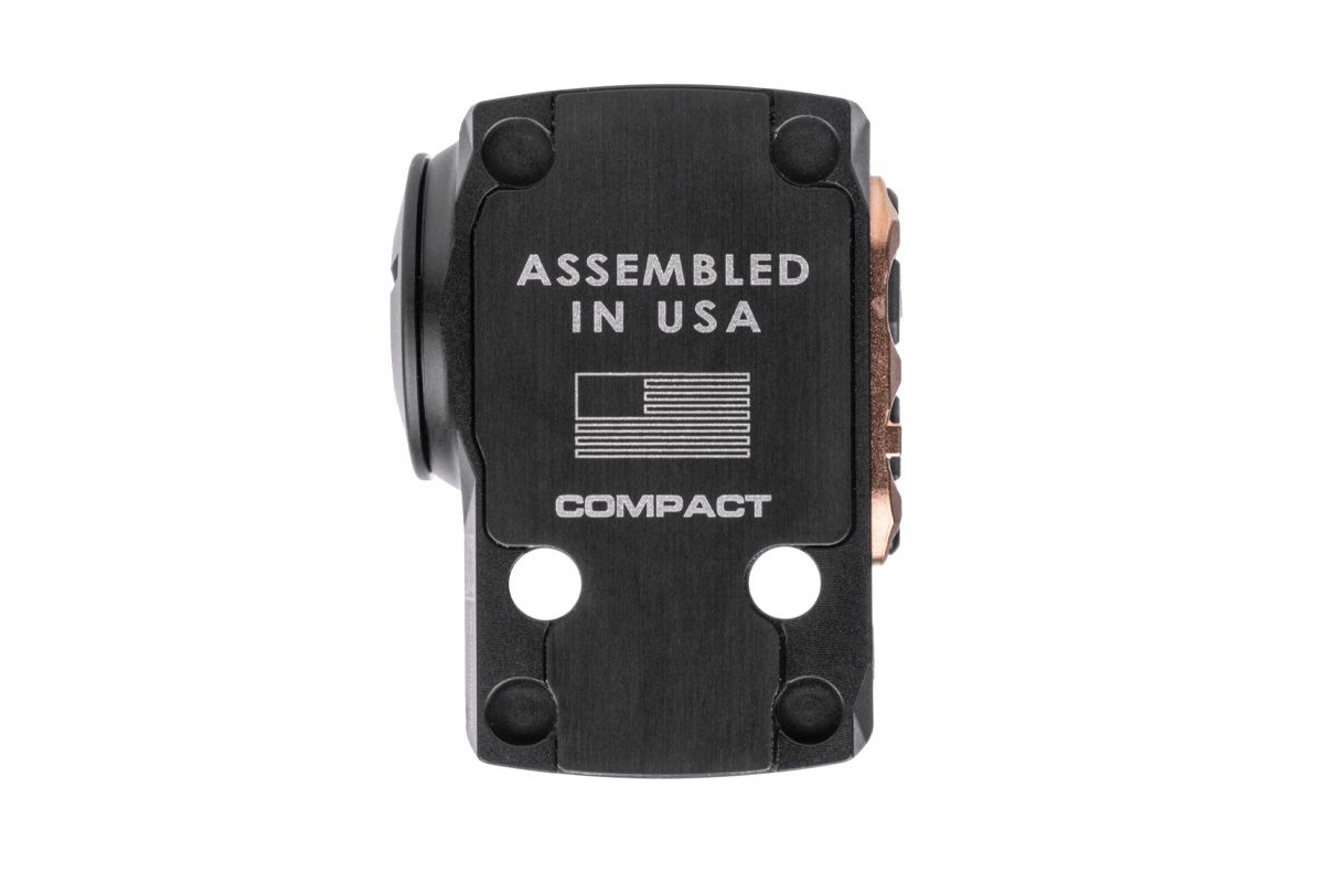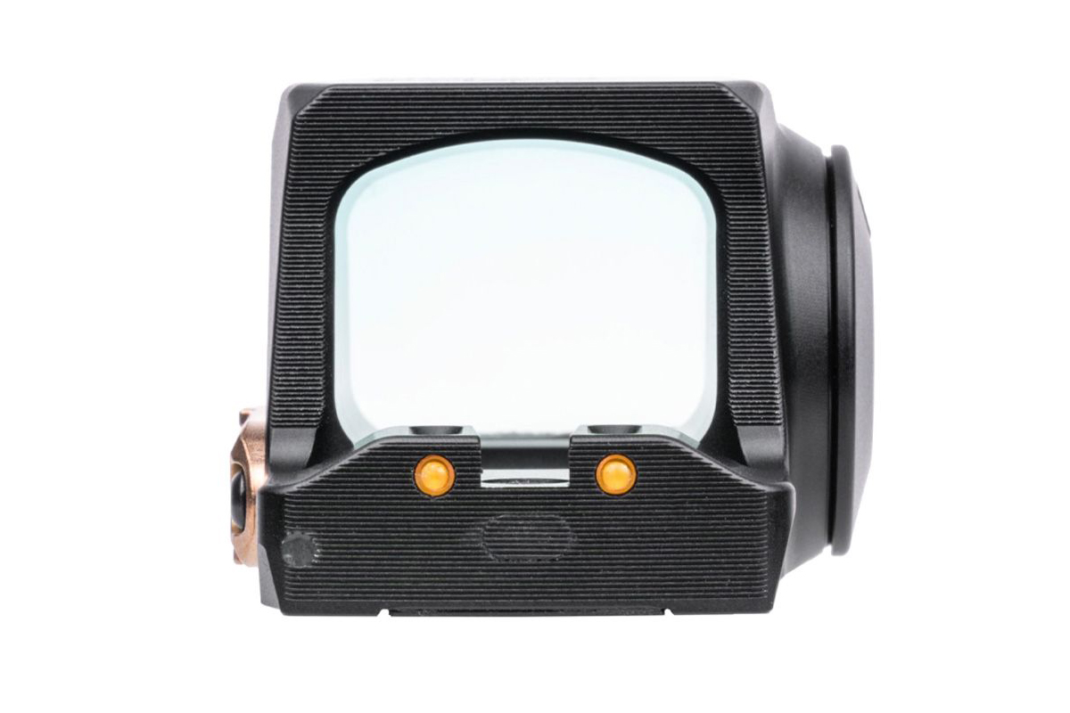 • MAGNETAC™ (Magnetische Aktivierung): Ein Sensor in der Optik erkennt einen Neodym-Magneten in einem kompatiblen Holster, um die Optik beim Tragen im Holster automatisch auszuschalten und so die Batterielebensdauer zu verlängern. Wenn die Waffe aus dem Holster gezogen wird, schaltet sich die Optik sofort auf die zuletzt verwendete Einstellung ein.