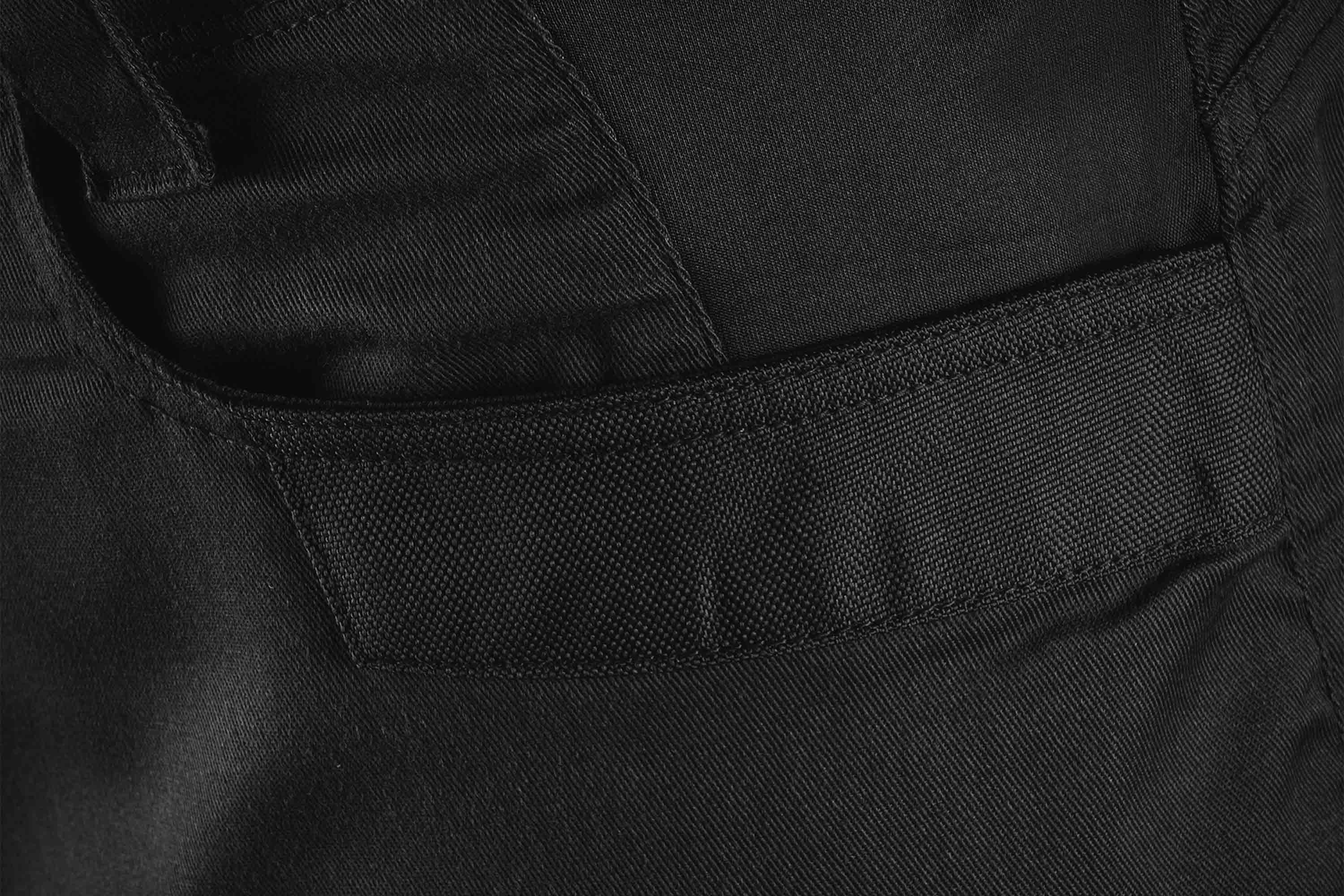 Zusätzlich stehen verstärkte Hüfttaschen sowie zwei Gesäßtaschen zur Verfügung. Hochwertige YKK-Reißverschlüsse sorgen dabei für zuverlässige Funktion und Langlebigkeit.