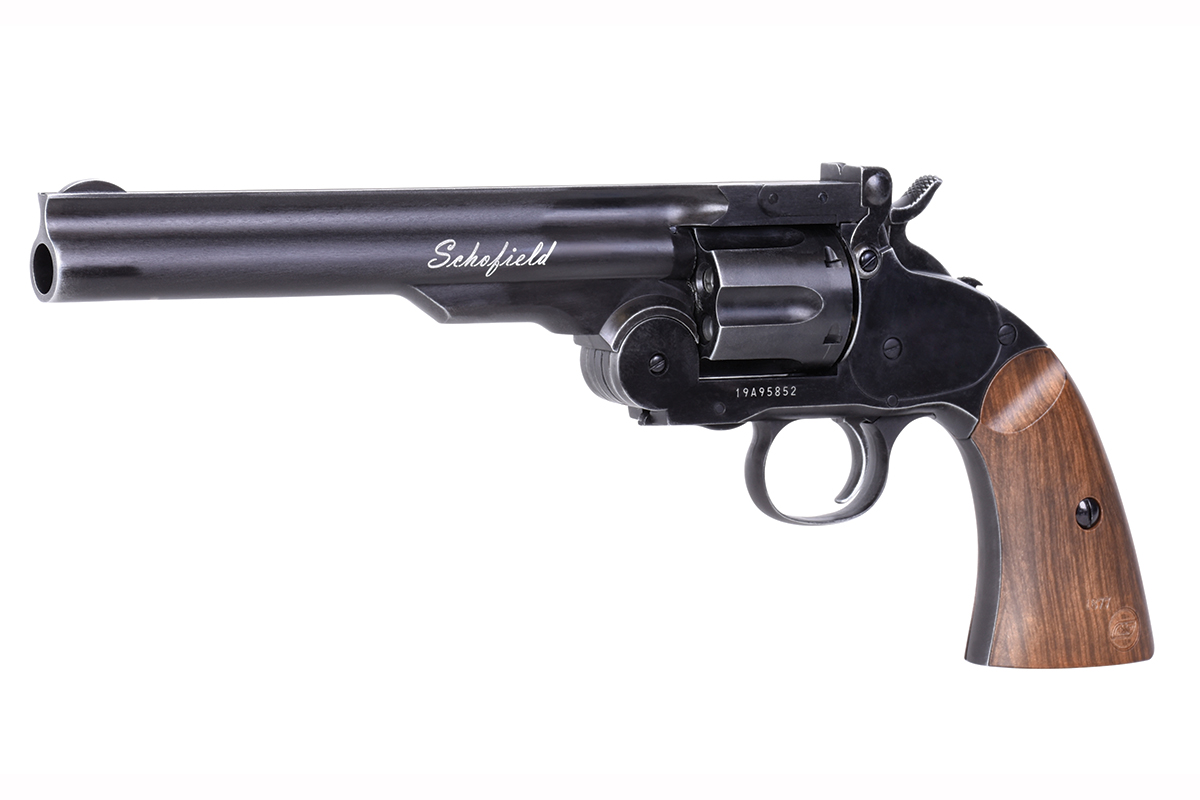 Der im Ursprung von Major Schofield der U.S.-Army konzipierte Revolver basiert auf dem Smith & Wesson Modell 3. Er sollte den Kavalleristen das Nachladen während des Reitens erleichtern. Mit diesem neuen Revolver konnte ein Kavallerist in weniger als 30 Sekunden Nachladen. Er war eine sehr beliebte Waffe und viele der großen Legenden des wildenWestens, wie General Custer, Jesse James und Wyatt Earp, benutzten angeblich einen Schofield-Revolver.