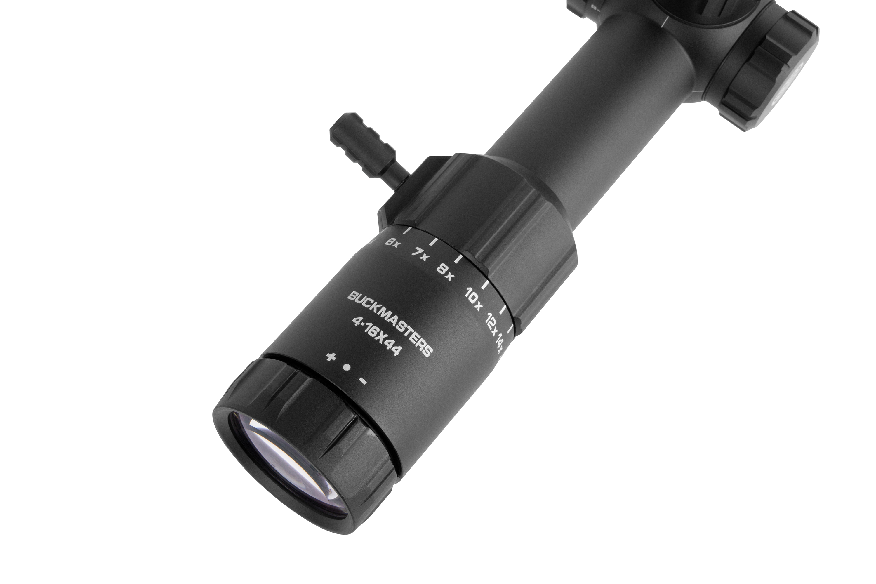 - Buckmasters Bullet Drop Compensation (BDC)-Absehen mit Haltepunkten bis zu 500 Yards