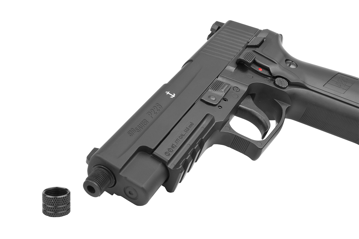 Der hochwertige Nachbau aus dem Hause Sig Sauer wird aus Vollmetall gefertigt und verfügt über eine integrierte Montageschiene, eine 3-Punkt-Visierung und ein 2x8 Schuss Wechselmagazin. Das hohe Gewicht und der repetierende Schlitten vermitteln ein reales Schiesserlebnis. Das Modell ist Silencer kompatibel und bietet einen einfachen Kartuschenanstich.