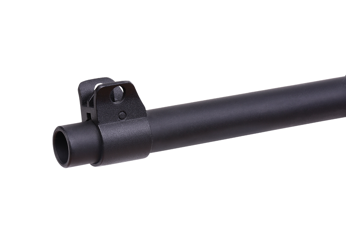 Der Upper Receiver wird aus Metall gefertigt, der Schaft besteht aus einem schlagfesten Kunststoff in Holzoptik. Die hintere Visierung ist einstellbar. Der Nachbau ist im Kaliber 4,5mm BB und im Kaliber 6mm BB erhältlich.