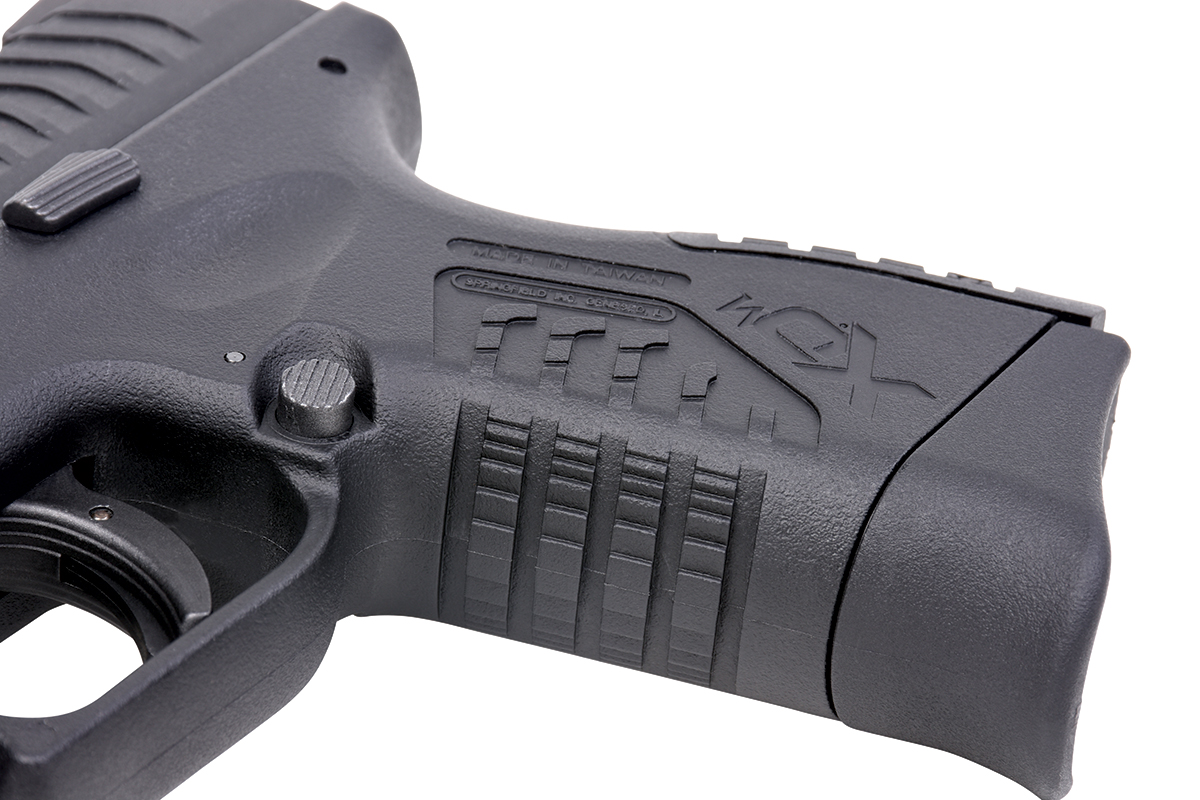 Die Waffe ist ganz einfach auf Co2 umrüstbar. Dazu benötigst du lediglich das XDM Co2 Magazin (als Zubehör erhältlich) und die im Lieferumfang enthaltene Magazinverlängerung.