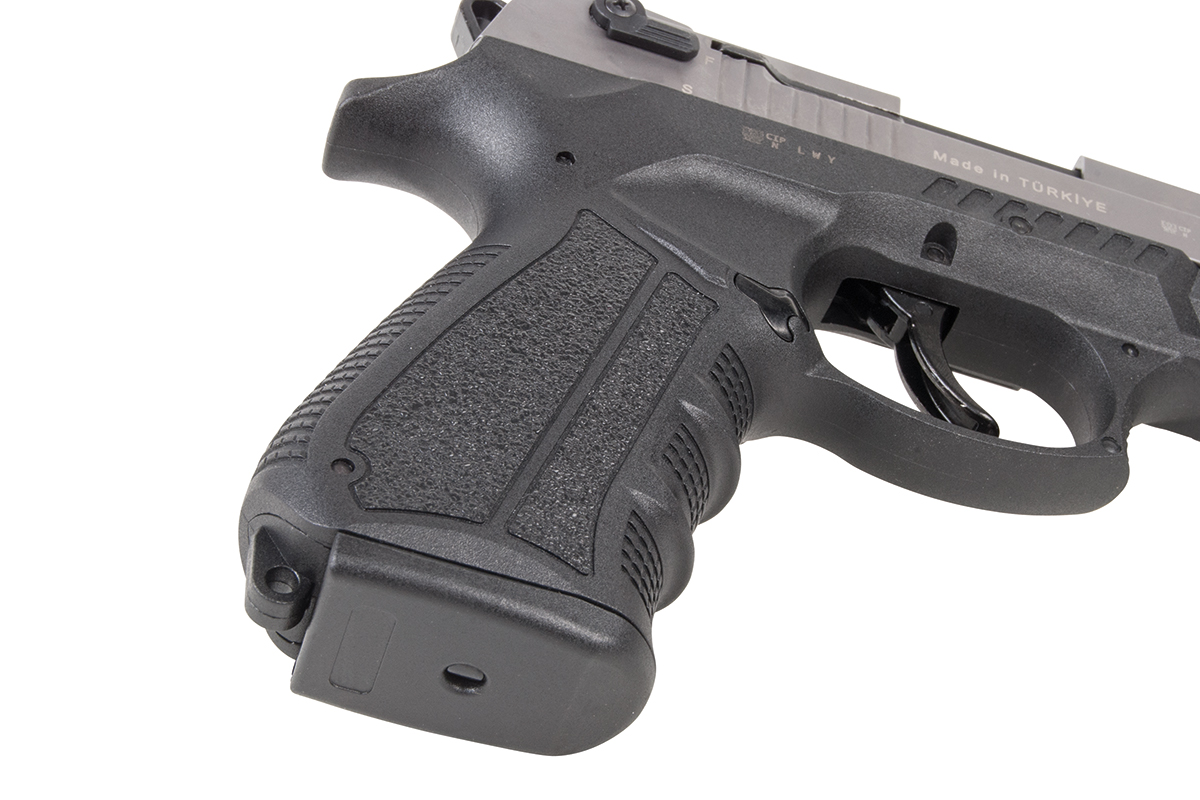 Die Gas-Signalpistole aus dem Hause Zoraki verfügt über ein Polymer-Griffstück, einen Schlitten aus Metall, stahlverstärkte Funktionsteile, eine integrierte Railschiene und einen Double-Action Abzug. Sie kann mit wenigen Handgriffen zerlegt werden.