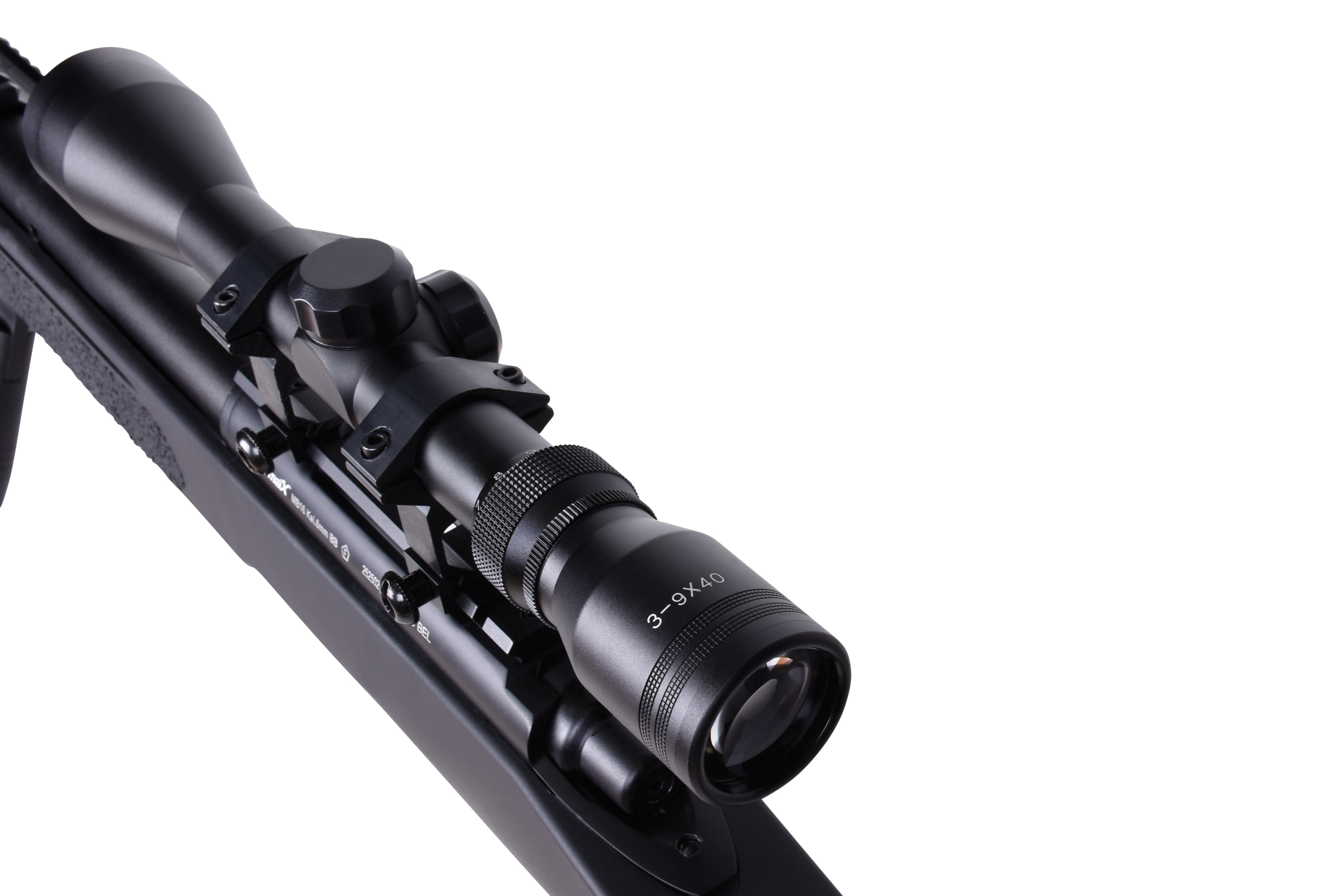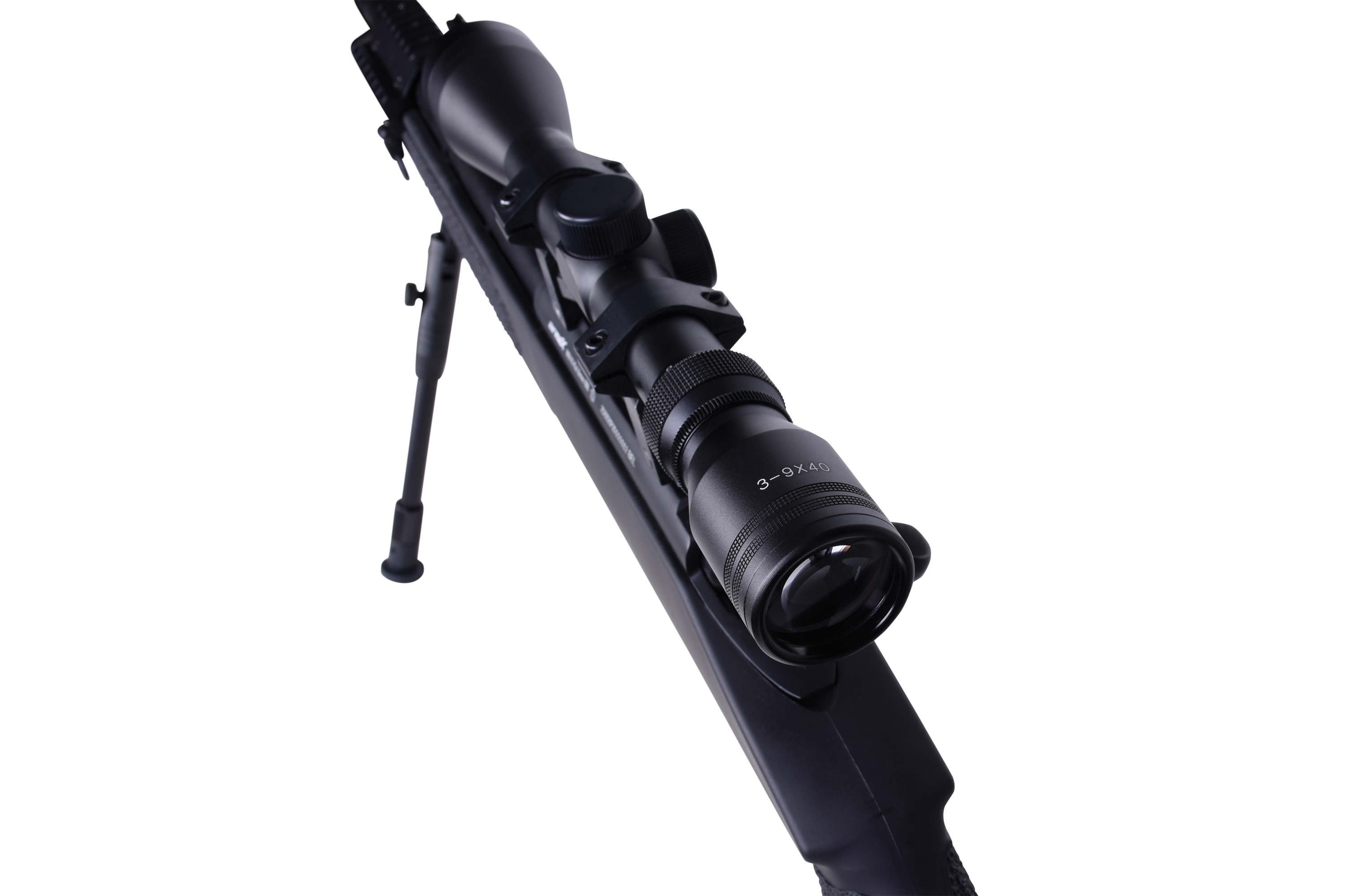 Das MB16 Sniper verfügt über eine höhenverstellbare Schaftbacke,ein einstellbares Zweibein mit Klickmontage, ein Zielfernrohr3-9x40 inklusive Montage, einer manuellen Sicherung rechts undzwei Befestigungsösen für einen Trageriemen.
