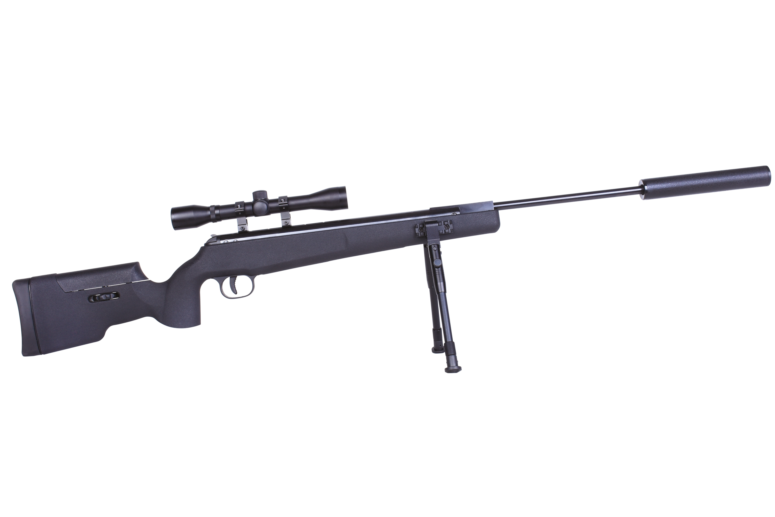 Das moderne airmaX® Luftgewehr SR1250S wird aus Metall und ABS-Kunststoff hergestellt und verfügt über eine verstellbare Schaftbacke, ein einstellbares Zweibein mit Klickmontage, ein Zielfernrohr 4x32 inklusive Zielfernrohrmontage und einem Schalldämpfer.